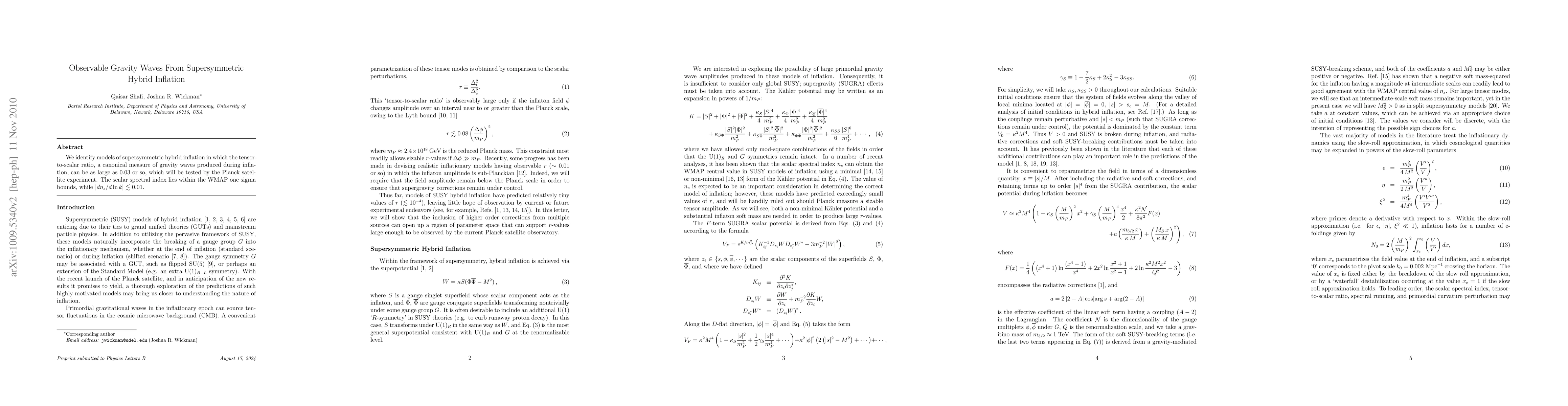 This paper explores supersymmetric hybrid inflation models where the tensor-to-scalar ratio, indicative of observable gravity waves, reaches up to 0.03, a value detectable by the Planck satellite. The models align with WMAP bounds on the scalar spectral index and exhibit a small running spectral index.