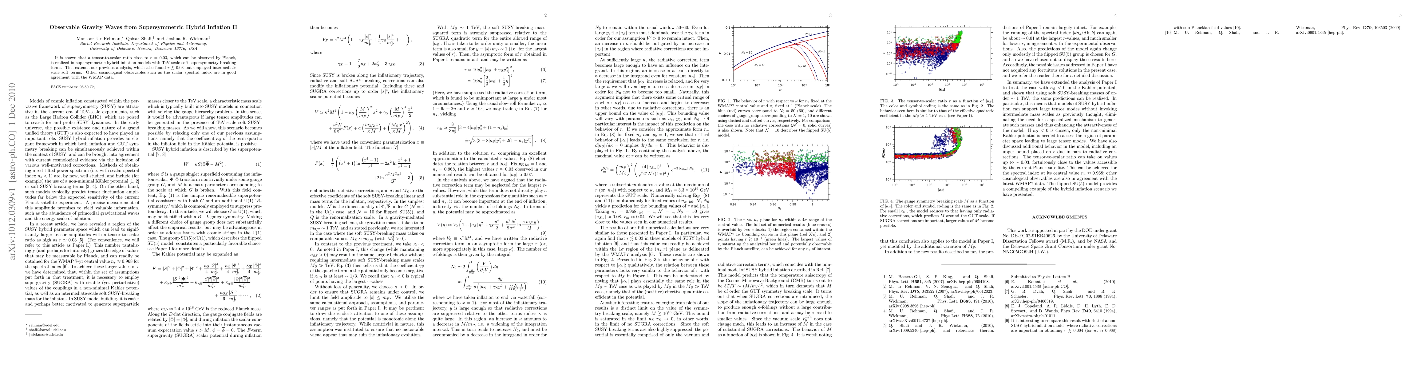 This paper demonstrates that supersymmetric hybrid inflation models with TeV-scale soft supersymmetry breaking terms can produce a tensor-to-scalar ratio of r ≈ 0.03, observable by Planck, while maintaining compatibility with WMAP data for other cosmological observables. This extends previous findings with intermediate scale soft terms.