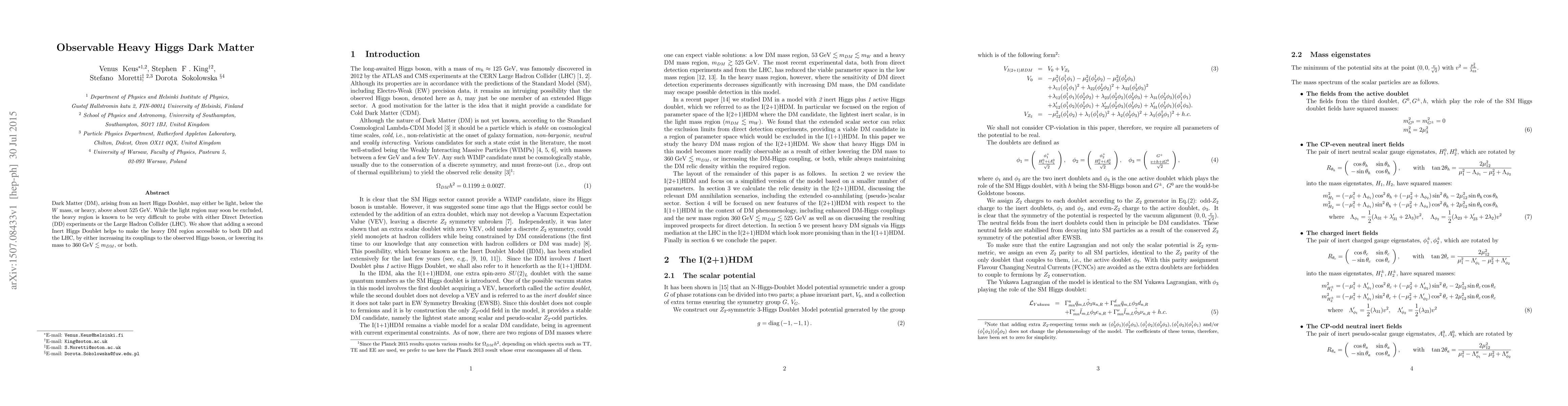 Dark Matter (DM), arising from an Inert Higgs Doublet, may either be light, below the $W$ mass, or heavy, above about 525 GeV. While the light region may soon be excluded, the heavy region is known to be very difficult to probe with either Direct Detection (DD) experiments or the Large Hadron Collider (LHC). We show that adding a second Inert Higgs Doublet helps to make the heavy DM region accessible to both DD and the LHC, by either increasing its couplings to the observed Higgs boson, or lowering its mass to $360 \gev \lesssim m_{DM}$, or both.