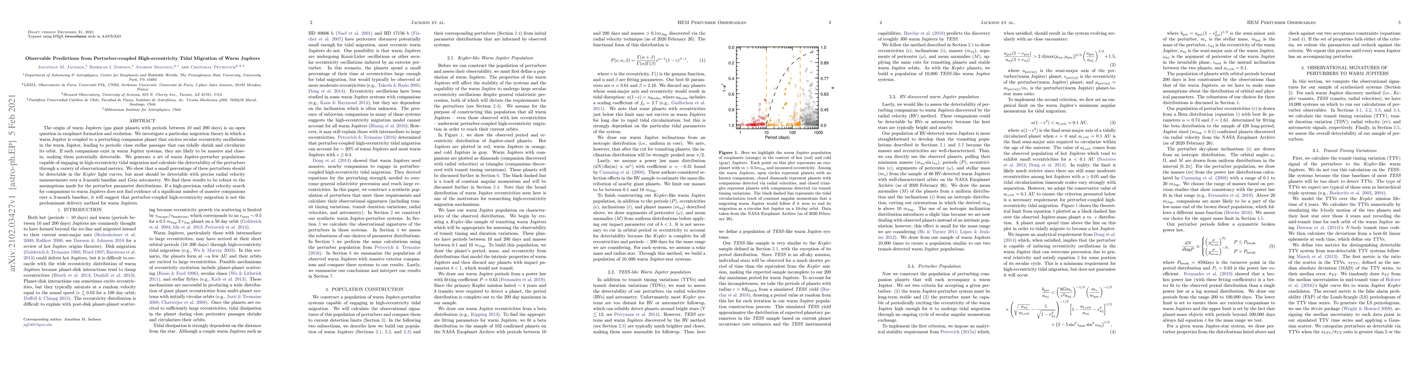 This paper explores a theory of warm Jupiter migration involving a perturbing companion planet that induces high-eccentricity tidal migration, potentially detectable through Kepler light curves, radial velocity measurements, and Gaia astrometry. The study concludes that if significant perturbers are not found, it would challenge this migration mechanism as the primary pathway for warm Jupiter formation.