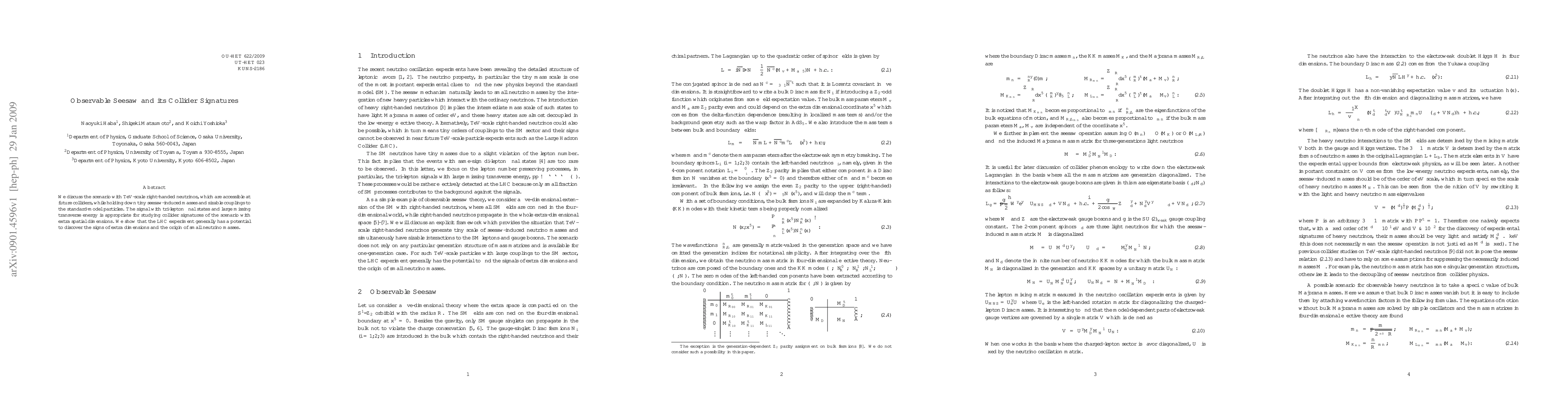 We discuss the scenario with TeV-scale right-handed neutrinos, which are accessible at future colliders, while holding down tiny seesaw-induced masses and sizable couplings to the standard-model particles. The signal with tri-lepton final states and large missing transverse energy is appropriate for studying collider signatures of the scenario with extra spatial dimensions. We show that the LHC experiment generally has a potential to discover the signs of extra dimensions and the origin of small neutrino masses.