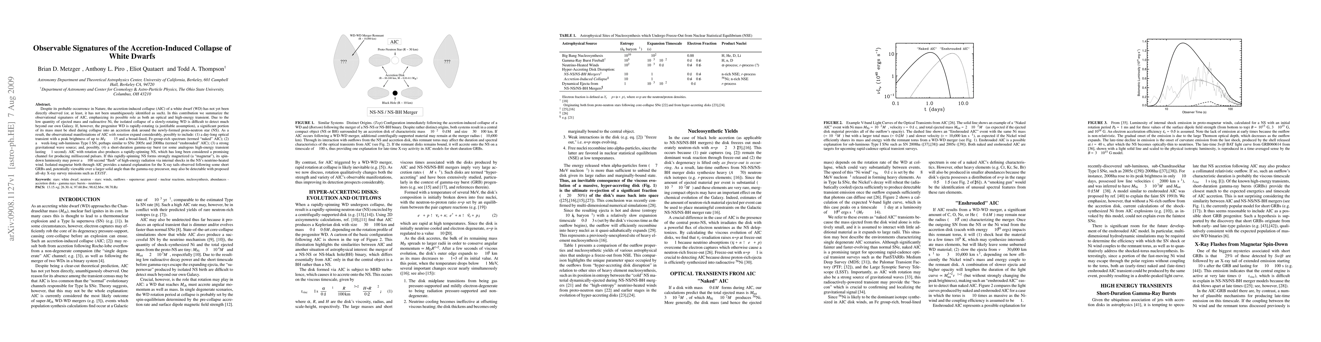 This paper explores the observable signatures of the accretion-induced collapse (AIC) of white dwarfs, highlighting its potential as an optical and high-energy transient, despite its probable occurrence in nature yet lack of direct observation.