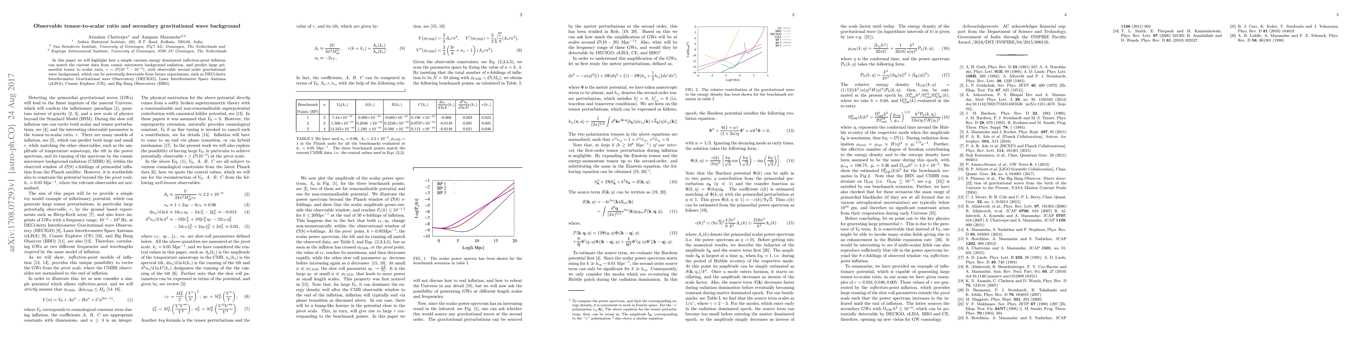 In this paper we will highlight how a simple vacuum energy dominated inflection-point inflation can match the current data from cosmic microwave background radiation, and predict large primordial tensor to scalar ratio, $r \sim \mathcal{O}(10^{-3}-10^{-2})$, with observable second order gravitational wave background, which can be potentially detectable from future experiments, such as DECi-hertz Interferometer Gravitational wave Observatory (DECIGO), Laser Interferometer Space Antenna (eLISA), Cosmic Explorer (CE), and Big Bang Observatory (BBO).