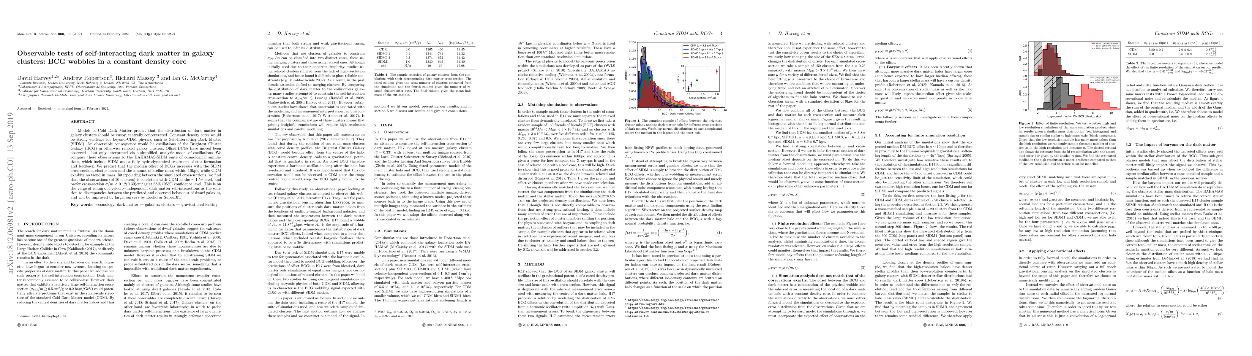This paper investigates the potential for Self-Interacting Dark Matter (SIDM) in galaxy clusters through the observation of Brightest Cluster Galaxy (BCG) wobbles, suggesting that constant density cores would indicate SIDM. The study finds that current observations are consistent with Cold Dark Matter (CDM) models at a 1.5σ level, ruling out strong SIDM interactions at 95% confidence.
