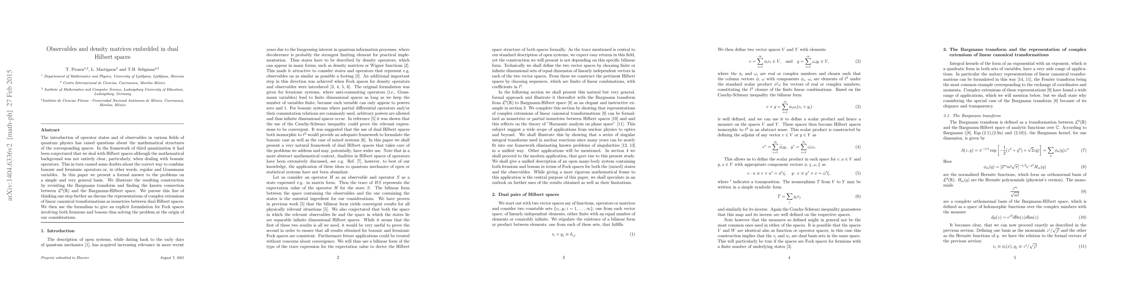 The introduction of operator states and of observables in various fields of quantum physics has raised questions about the mathematical structures of the corresponding spaces. In the framework of third quantization it had been conjectured that we deal with Hilbert spaces although the mathematical background was not entirely clear, particularly, when dealing with bosonic operators. This in turn caused some doubts about the correct way to combine bosonic and fermionic operators or, in other words, regular and Grassmann variables. In this paper we present a formal answer to the problems on a simple and very general basis. We illustrate the resulting construction by revisiting the Bargmann transform and finding the known connection between L^2(R) and the Bargmann-Hilbert space. We then use the formalism to give an explicit formulation for Fock spaces involving both fermions and bosons thus solving the problem at the origin of our considerations.