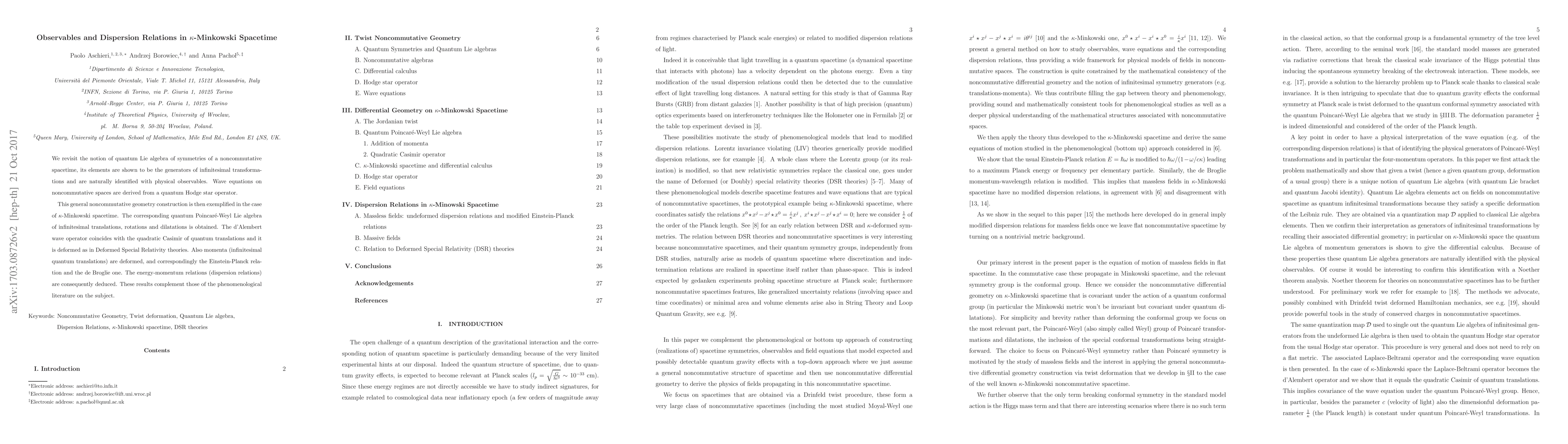 The paper presents a detailed construction of the quantum Poincaré-Weyl algebra for k-Minkowski spacetime, including the deformed d'Alembert operator and momenta, providing a concrete example of how noncommutative geometry can inform theories of deformed special relativity.