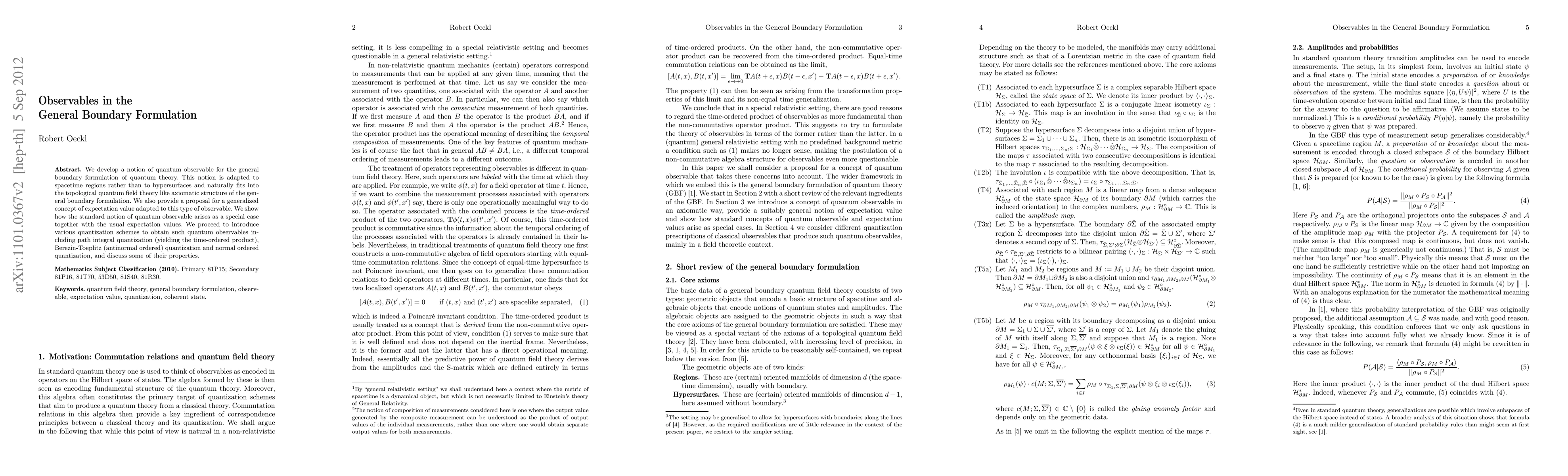 This paper develops a quantum observable concept within the general boundary formulation of quantum theory, adapted to spacetime regions. It also introduces various quantization schemes, including path integral, Berezin-Toeplitz, and normal ordering, and discusses their properties.