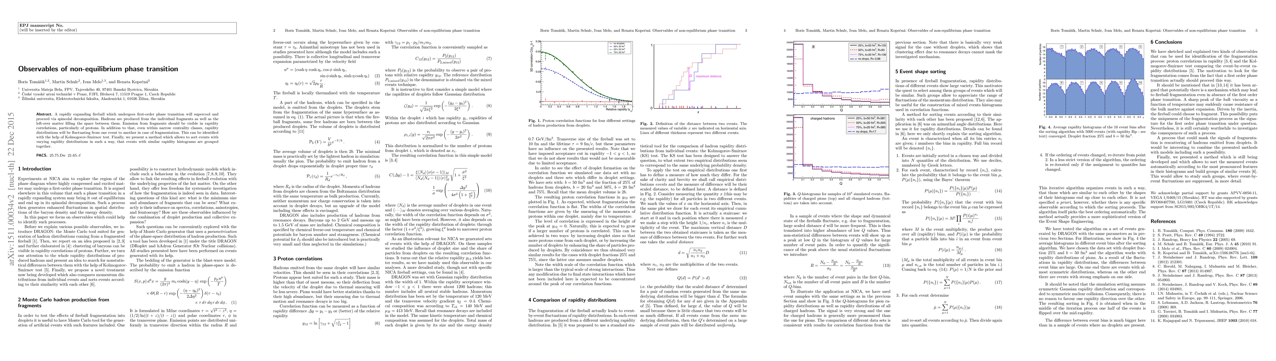 A rapidly expanding fireball which undergoes first-order phase transition will supercool and proceed via spinodal decomposition. Hadrons are produced from the individual fragments as well as the left-over matter filling the space between them. Emission from fragments should be visible in rapidity correlations, particularly of protons. In addition to that, even within narrow centrality classes, rapidity distributions will be fluctuating from one event to another in case of fragmentation. This can be identified with the help of Kolmogorov-Smirnov test. Finally, we present a method which allows to sort events with varying rapidity distributions in such a way, that events with similar rapidity histograms are grouped together.