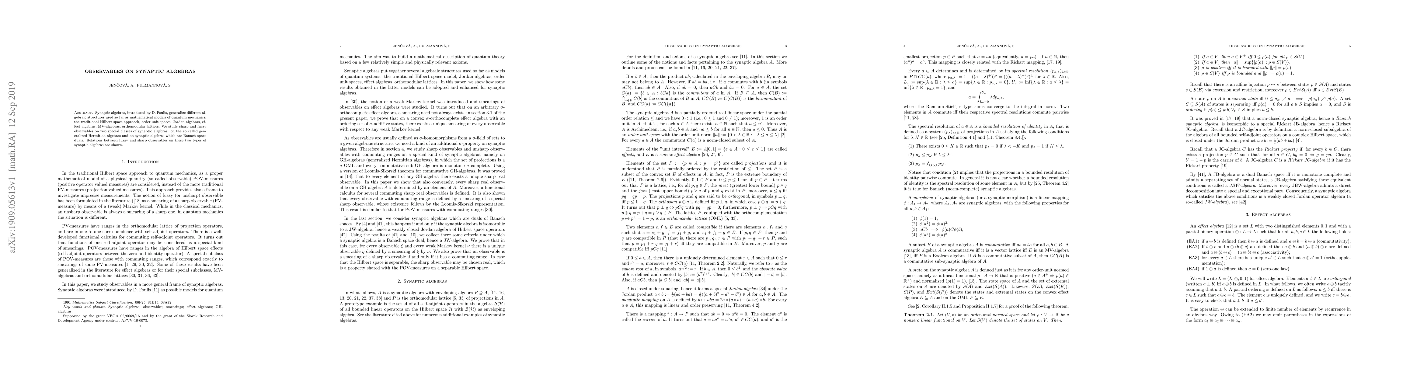 This research highlights the importance of synapticalgebras in quantum mechanics and provides a foundation for future research.