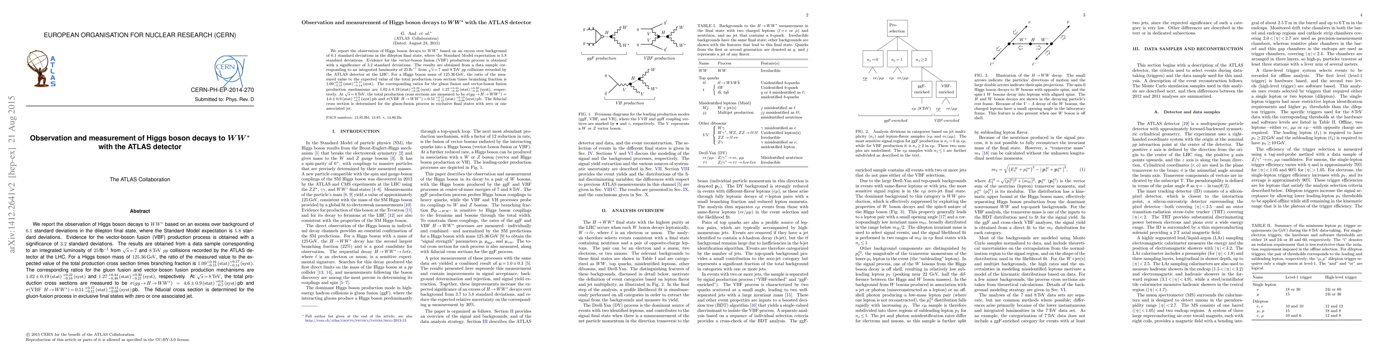 The ATLAS detector at the LHC observed Higgs boson decays to $WW^{\ast}$ with a $6.1$ standard deviation excess, confirming the Standard Model prediction. Evidence for vector-boson fusion production was found at $3.2$ standard deviations, using data from $25\,\textrm{fb}^{-1}$ of $7$ and $8$ TeV $pp$ collisions.