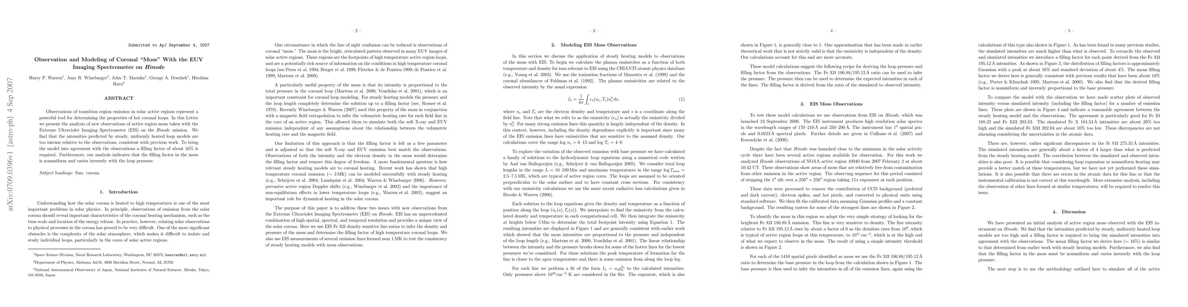 This paper analyzes observations of solar active region "moss" using the EIS on Hinode, finding that steady, uniformly heated loop models overpredict intensities. To match observations, a nonuniform filling factor of about 16% is needed, with the filling factor inversely varying with loop pressure.