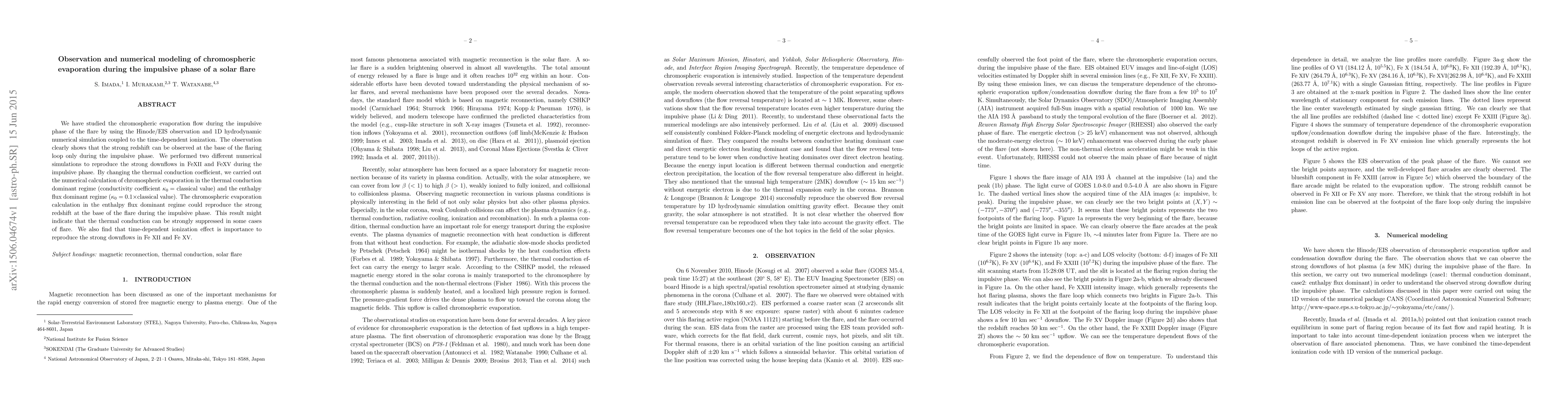 This paper investigates chromospheric evaporation in the impulsive phase of a solar flare using Hinode/EIS observations and 1D hydrodynamic simulations. The study finds that the enthalpy flux dominant regime, where thermal conduction is suppressed, can reproduce the observed strong redshifts, suggesting that thermal conduction may be significantly reduced during flares. Time-dependent ionization effects are also crucial for accurately modeling the downflows in Fe XII and Fe XV.
