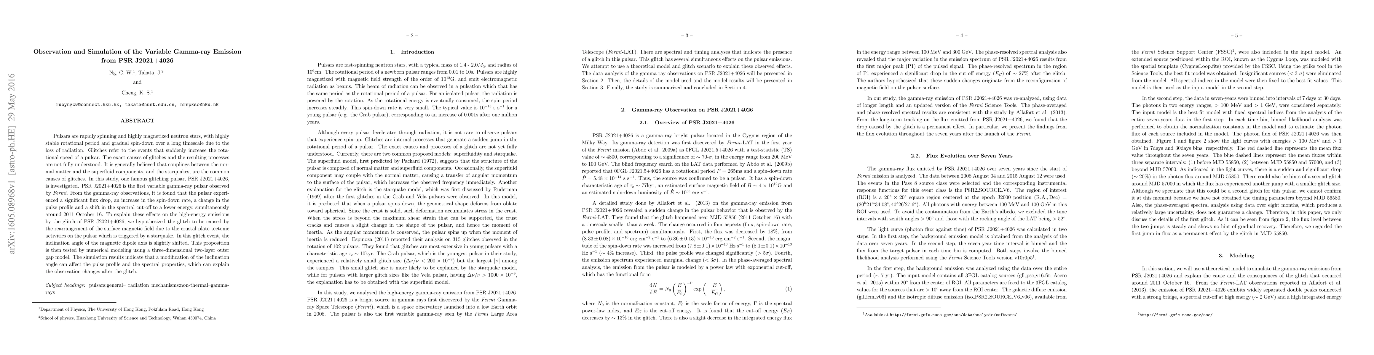 Researchers studied a pulsar that experienced a significant glitch, leading to changes in its gamma-ray emissions, which were simulated using a three-dimensional model to show the effects of altered magnetic field inclination.