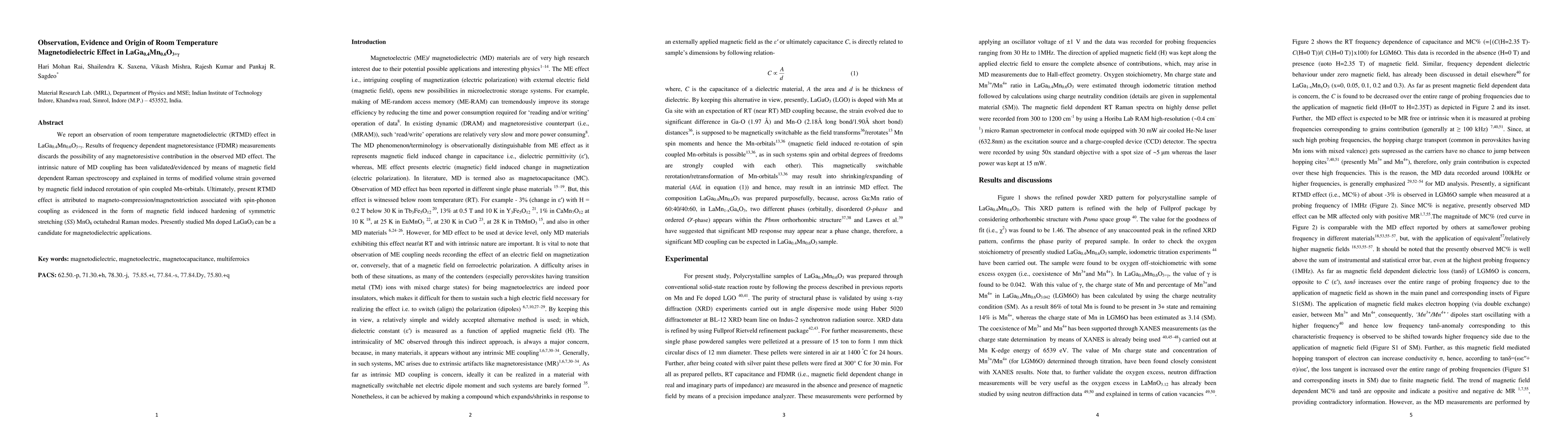Researchers observed a room temperature magnetodielectric effect in Mn-doped LaGaO3, attributing it to spin-phonon coupling and magneto-compression, with potential applications for magnetodielectric devices.