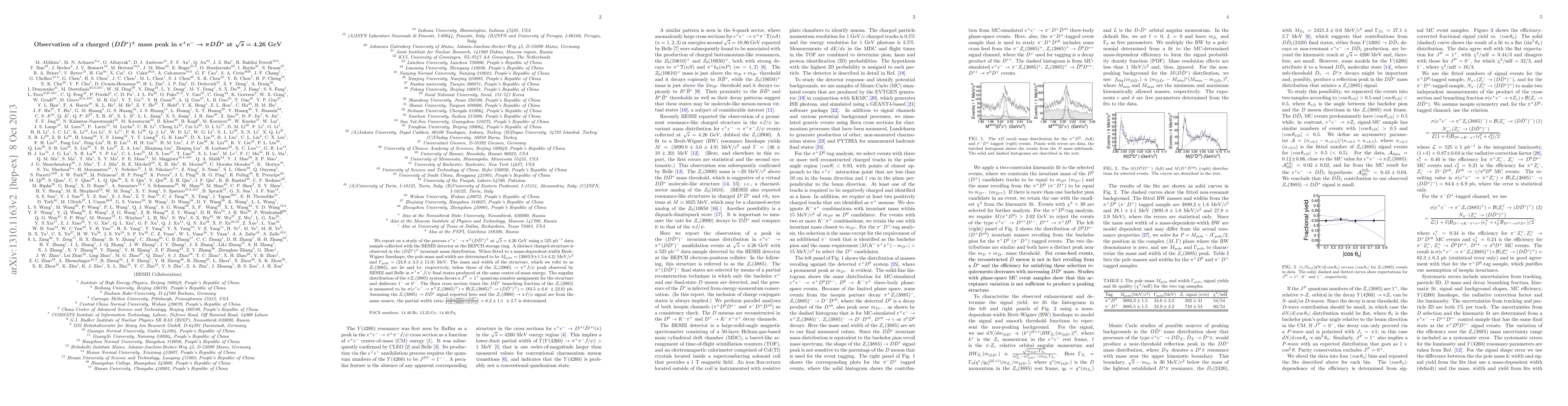 We report on a study of the process e+e- --> pi+(D D*bar)- at Ecm=4.26 GeV using a 525 /pb data sample collected with the BESIII detector at the BEPCII storage ring. A distinct charged structure is observed in the (DD*bar)- invariant mass distribution. When fitted to a mass-dependent-width Breit-Wigner lineshape, the pole mass and width are determined to be M_pole=(3883.9 +- 1.5 +- 4.2) MeV and Gamma_pole=(24.8 +- 3.3 +- 11.0) MeV. The mass and width of the structure, which we refer to as Z_c(3885), are 2sigma and 1sigma, respectively, below those of the Z_c(3900) --> pi+J/psi peak observed by BESIII and Belle in pi+pi-J/psi final states produced at the same center-of-mass energy. The angular distribution of the pi Z_c(3885) system favors a JP=1+ quantum number assignment for the structure and disfavors 1- or 0-. The Born cross section times the DD*bar branching fraction of the Z_(3885) is measured to be sigma(e+e- --> pi+ Z_c(3885)-) x Bf(Z_c(3885)-->DD*bar)=(83.5 +-6.6 +- 22.0) pb. Assuming the Z_c(3885) --> DD*bar signal reported here and the Z_c(3900) --> pi J/psi signal are from the same source, the partial width ratio Gamma(Z_c(3885) --> DD*bar)/Gamma(Z_c(3900) -->pi J/psi)=6.2 +- 1.1 +- 2.7 is determined.
