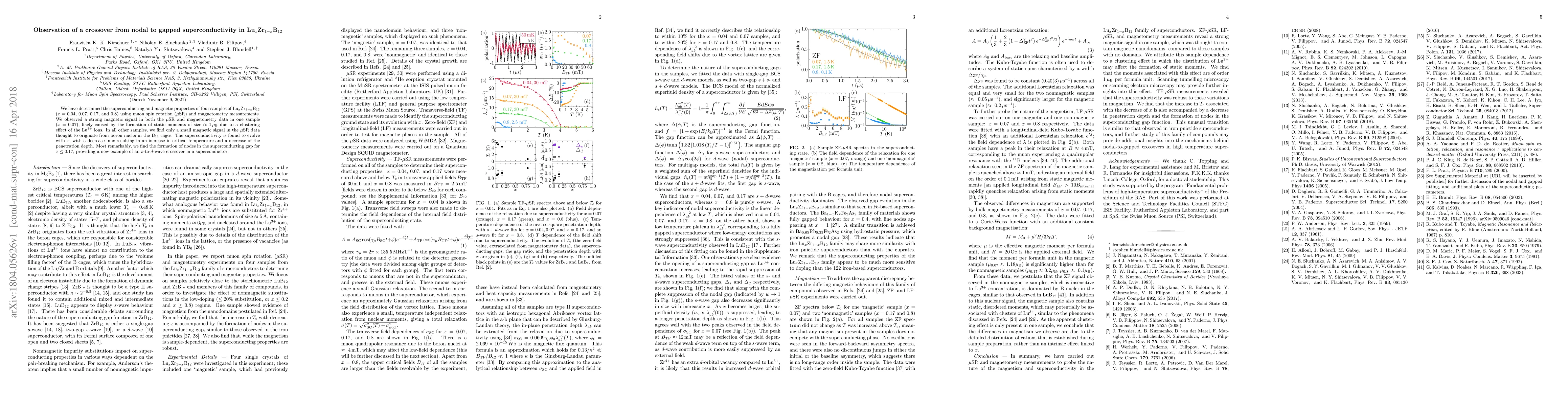 The study observed a crossover from nodal to gapped superconductivity in Lu$_x$Zr$_{1-x}$B$_{12}$, with a change in critical temperature and penetration depth as Lu content increases.