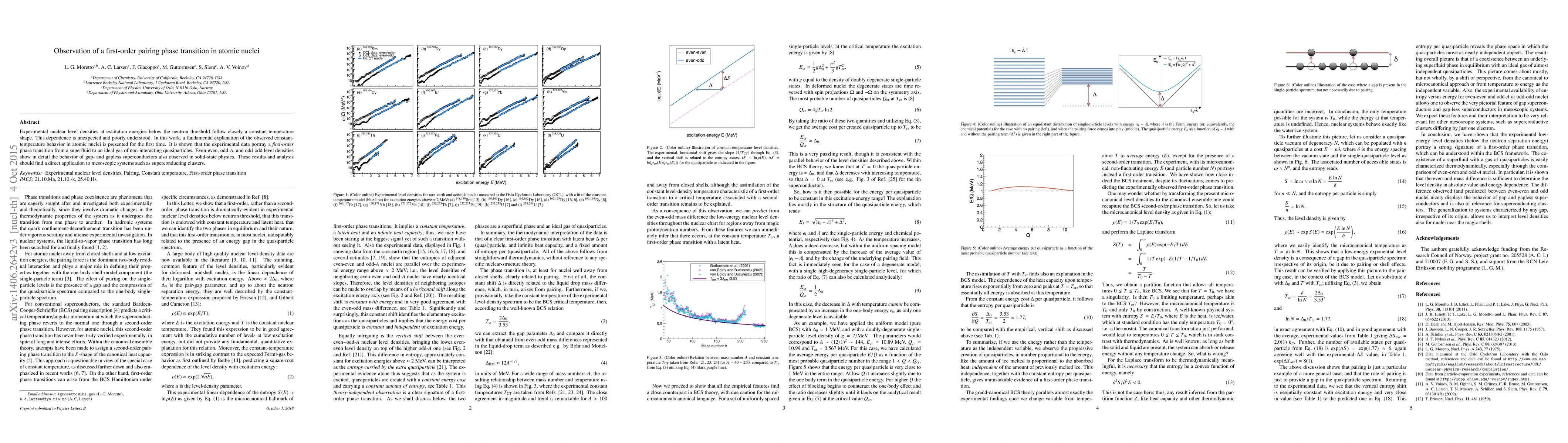 Experimental nuclear level densities at excitation energies below the neutron threshold follow closely a constant-temperature shape. This dependence is unexpected and poorly understood. In this work, a fundamental explanation of the observed constant-temperature behavior in atomic nuclei is presented for the first time. It is shown that the experimental data portray a first-order phase transition from a superfluid to an ideal gas of non-interacting quasiparticles. Even-even, odd-$A$, and odd-odd level densities show in detail the behavior of gap- and gapless superconductors also observed in solid-state physics. These results and analysis should find a direct application to mesoscopic systems such as superconducting clusters.