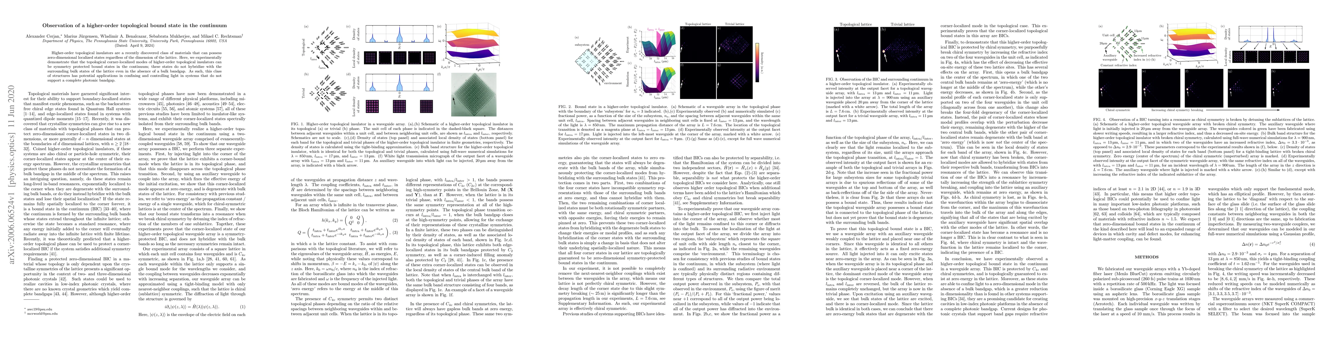 This research experimentally verifies the existence of topological corner-localized modes in higher-order topological insulators, demonstrating they can be symmetry-protected bound states in the continuum that do not hybridize with bulk states, indicating potential applications in light confinement without a complete photonic bandgap.