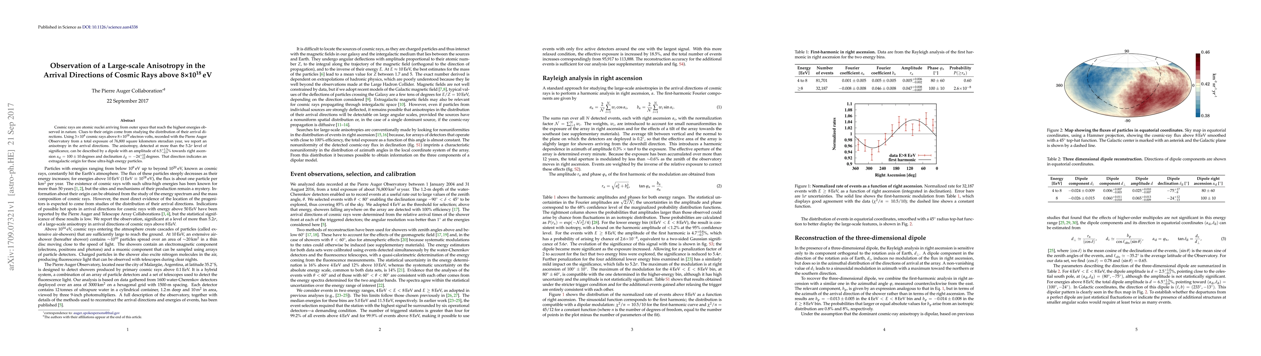 This study reports a significant anisotropy in the arrival directions of cosmic rays above $8 \times 10^{18}$ eV, observed using the Pierre Auger Observatory. The detected anisotropy suggests an extragalactic origin for these ultra-high energy particles, with a dipole direction towards right ascension $\alpha_{d} = 100 \pm 10$ degrees and declination $\delta_{d} = -24_{-13}^{+12}$ degrees.