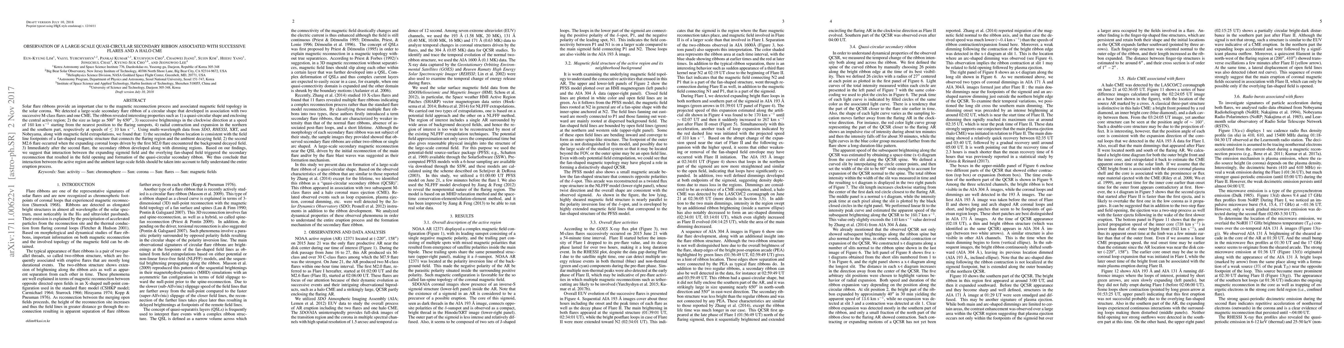Solar flare ribbons provide an important clue to the magnetic reconnection process and associated magnetic field topology in the solar corona. We detected a large-scale secondary flare ribbon of a circular shape that developed in association with two successive M-class flares and one CME. The ribbon revealed interesting properties such as 1) a quasi-circular shape and enclosing the central active region; 2) the size as large as 500\arcsec\, by 650\arcsec\,, 3) successive brightenings in the clockwise direction at a speed of \kms{160} starting from the nearest position to the flaring sunspots, 4) radial contraction and expansion in the northern and the southern part, respectively at speeds of $\leq$ \kms{10}. Using multi-wavelength data from \textit{SDO}, \textit{RHESSI}, XRT, and Nobeyama, along with magnetic field extrapolations, we found that: 1) the secondary ribbon location is consistent with the field line footpoints of a fan-shaped magnetic structure that connects the flaring region and the ambient decaying field; 2) the second M2.6 flare occurred when the expanding coronal loops driven by the first M2.0 flare encountered the background decayed field. 3) Immediately after the second flare, the secondary ribbon developed along with dimming regions. Based on our findings, we suggest that interaction between the expanding sigmoid field and the overlying fan-shaped field triggered the secondary reconnection that resulted in the field opening and formation of the quasi-circular secondary ribbon. We thus conclude that interaction between the active region and the ambient large-scale fields should be taken into account to fully understand the entire eruption process.