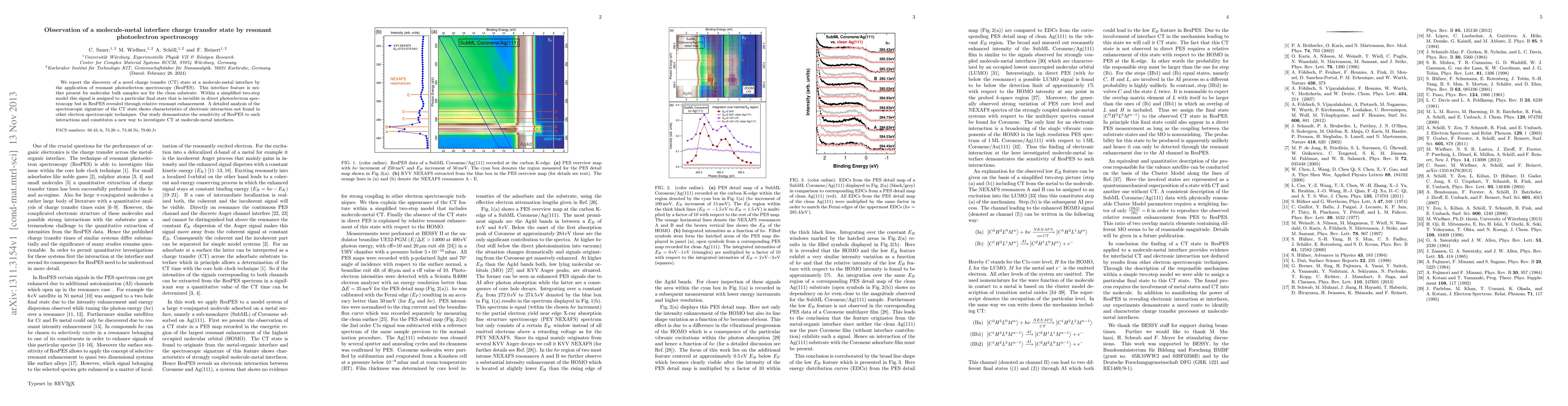 This study discovers a novel charge transfer state at a molecule-metal interface using resonant photoelectron spectroscopy, revealing electronic interactions not visible in conventional techniques. The observed state is unique to the interface and demonstrates the enhanced sensitivity of resonant photoelectron spectroscopy for studying such interactions.