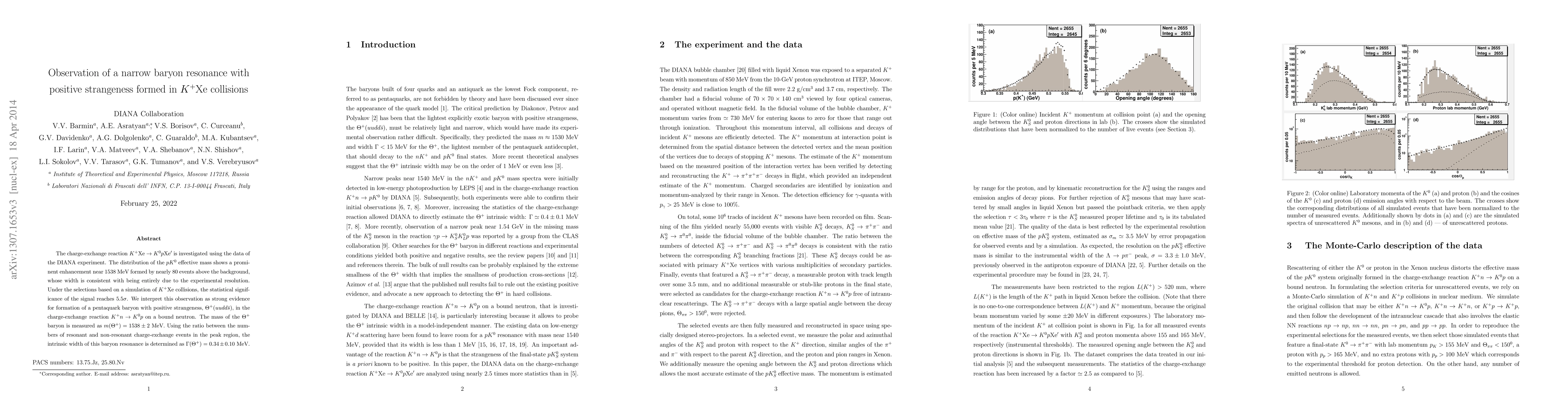 The charge-exchange reaction K^+ Xe --> K^0 p Xe' is investigated using the data of the DIANA experiment. The distribution of the pK^0 effective mass shows a prominent enhancement near 1538 MeV formed by \sim 80 events above the background, whose width is consistent with being entirely due to the experimental resolution. Under the selections based on a simulation of K^+Xe collisions, the statistical significance of the signal reaches 5.5\sigma. We interpret this observation as strong evidence for formation of a pentaquark baryon with positive strangeness, \Theta^+(uudd\bar{s}), in the charge-exchange reaction K^+ n --> K^0 p on a bound neutron. The mass of the \Theta^+ baryon is measured as m(\Theta^+) = 1538+-2 MeV. Using the ratio between the numbers of resonant and non-resonant charge-exchange events in the peak region, the intrinsic width of this baryon resonance is determined as \Gamma(\Theta^+) = 0.34+-0.10 MeV.