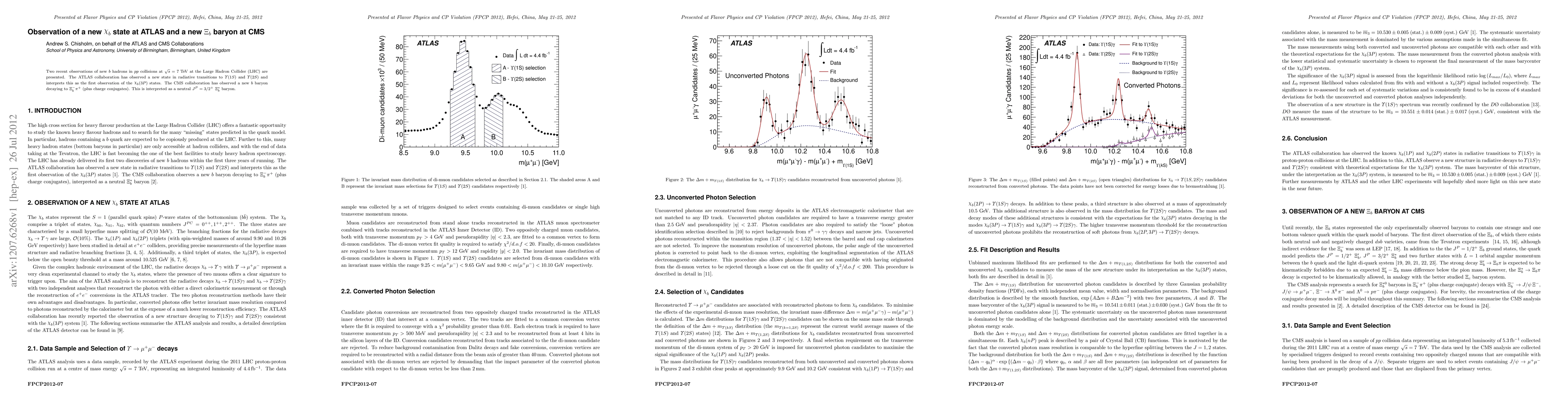 The ATLAS collaboration reports the first observation of the \chi_b(3P) state through radiative transitions to \Upsilon(1S) and \Upsilon(2S). The CMS collaboration observes a new neutral \Xi_b* baryon decaying to \Xi_b-\pi+ in proton-proton collisions at the LHC.