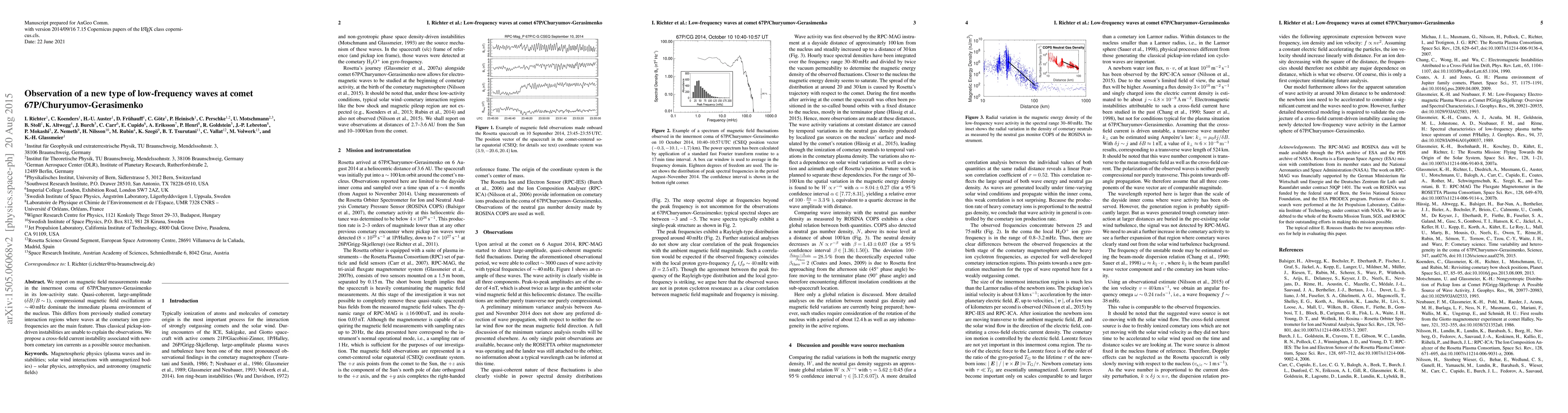 The paper reports the discovery of unique, large-amplitude magnetic field oscillations at ~40 mHz in the coma of Comet 67P/Churyumov-Gerasimenko during its low activity state. These findings differ from previous comet studies and suggest a cross-field current instability linked to newborn cometary ion currents as a potential source mechanism.