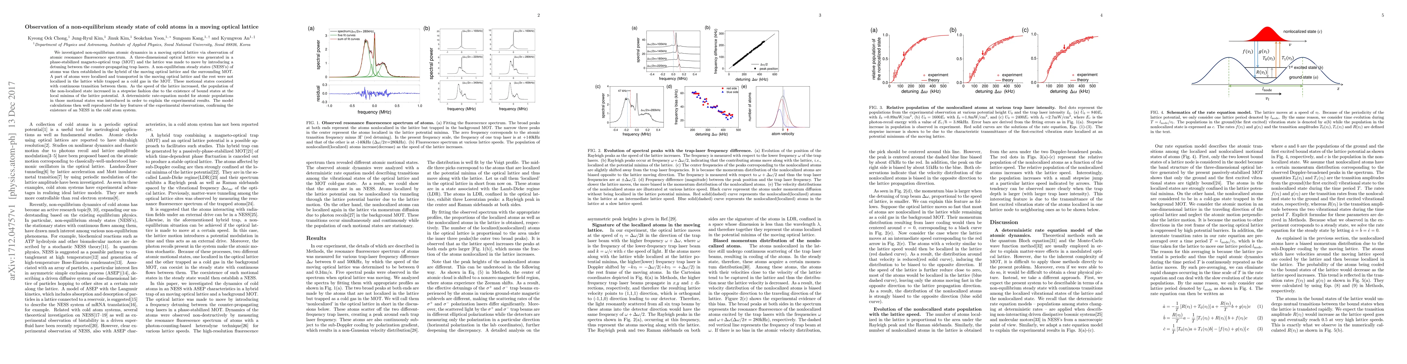 This paper observes non-equilibrium steady states (NESS) in cold atoms within a moving optical lattice, showing coexistence of localized and non-localized states. A deterministic rate-equation model successfully explains the experimental observations, confirming the system's NESS behavior.