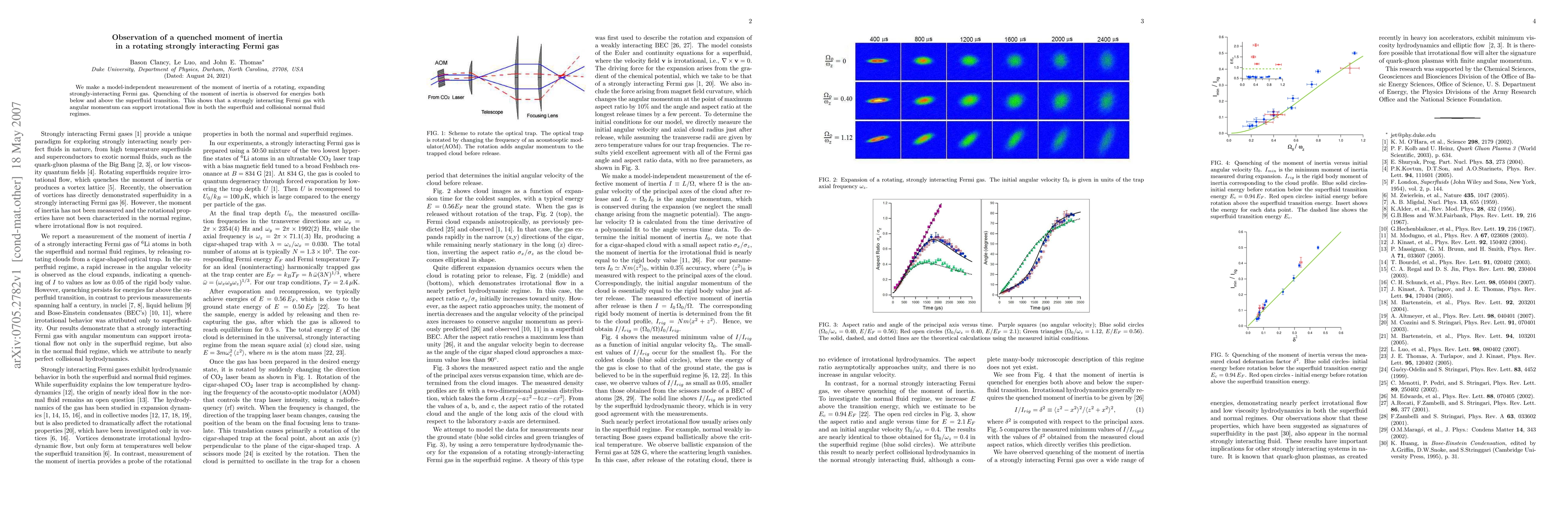 Summary: Researchers observe a quenched moment of inertia in a rotating, expanding strongly-interacting Fermi gas, demonstrating irrotational flow in both superfluid and collisional normal fluid regimes, regardless of the superfluid transition energy.