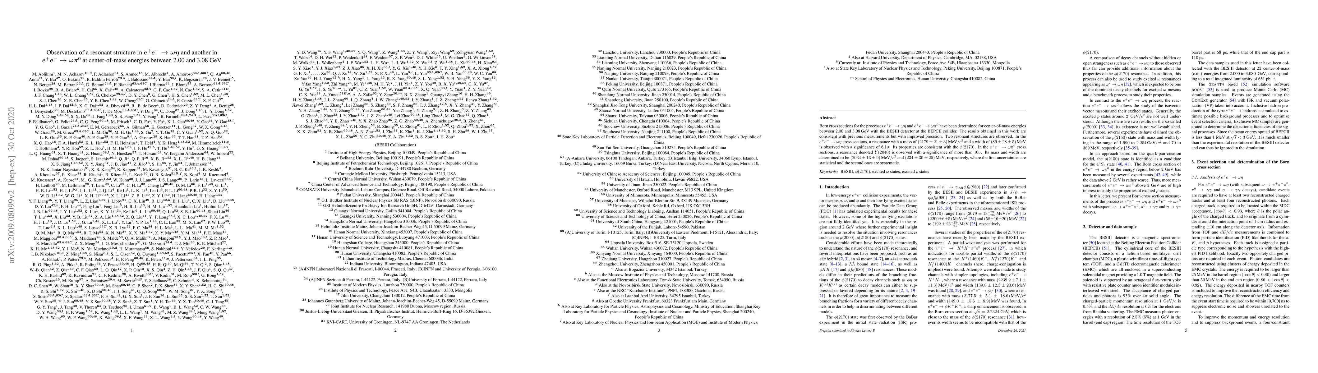 The BESIII detector at BEPCII collider observed two resonant structures in $e^{+}e^{-} \to \omega\eta$ and $e^{+}e^{-} \to \omega\pi^{0}$ processes between 2.00 and 3.08 GeV. The first resonance in $e^{+}e^{-} \to \omega\eta$ is consistent with $\phi(2170)$ with a mass of $(2179 \pm 21 \pm 3)\text{MeV}/c^2$ and width $(89 \pm 28 \pm 5)\text{MeV}$; the second resonance in $e^{+}e^{-} \to \omega\pi^{0}$ is a new $Y(2040)$ with a mass of $(2034 \pm 13 \pm 9)\text{MeV}/c^2$ and width $(234 \pm 30 \pm 25)\text{MeV}$.