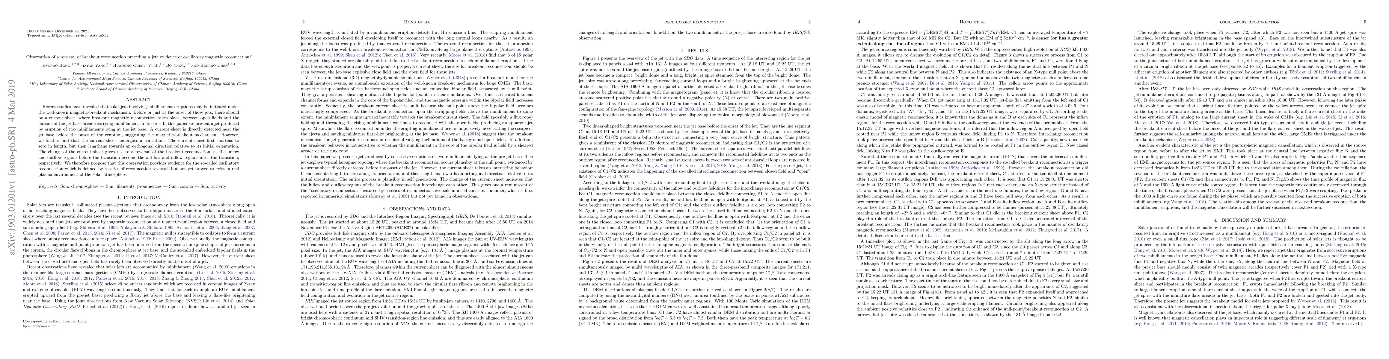 This paper observes a reversal in breakout reconnection preceding a solar jet, revealing a current sheet transition that shortens and then lengthens in an orthogonal direction, suggesting evidence for oscillatory magnetic reconnection in the solar atmosphere. The findings propose a mechanism for the initiation of solar jets through minifilament eruptions.