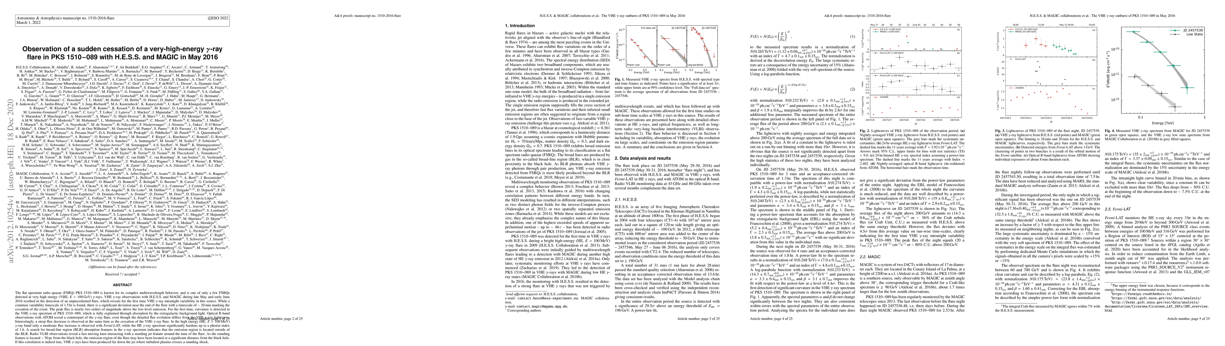 This paper reports the detection of a sudden cessation in a very-high-energy gamma-ray flare from the FSRQ PKS 1510-089, observed by H.E.S.S. and MAGIC in May 2016, revealing unprecedented intranight variability and a significant curvature in the VHE spectrum explained by extragalactic background light absorption. A steep flux decrease coincides with the end of the flare, suggesting the emission region may be located far from the black hole.
