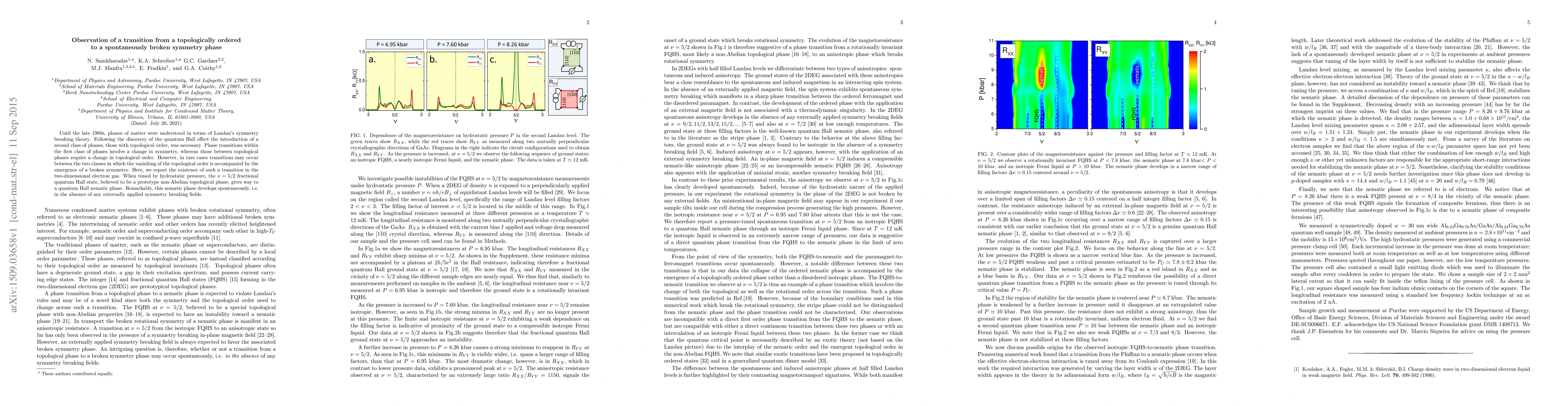 Researchers observe a unique phase transition in a 2D electron gas within a GaAs/AlGaAs crystal. Under hydrostatic pressure, the $ u=5/2$ fractional quantum Hall state, a candidate for a non-Abelian topological phase, transitions to a quantum Hall nematic phase exhibiting spontaneously broken symmetry, without external fields.