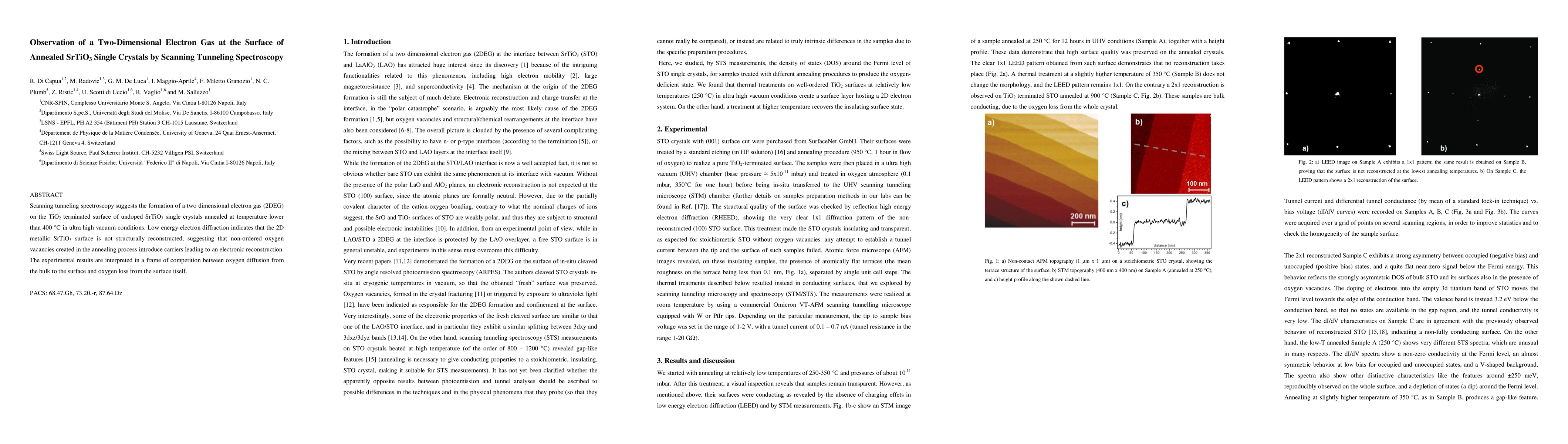 Researchers observed a 2D electron gas on the surface of SrTiO3 single crystals after annealing at low temperatures. The formation is attributed to oxygen vacancies created during the process, which compete with oxygen diffusion from the bulk.