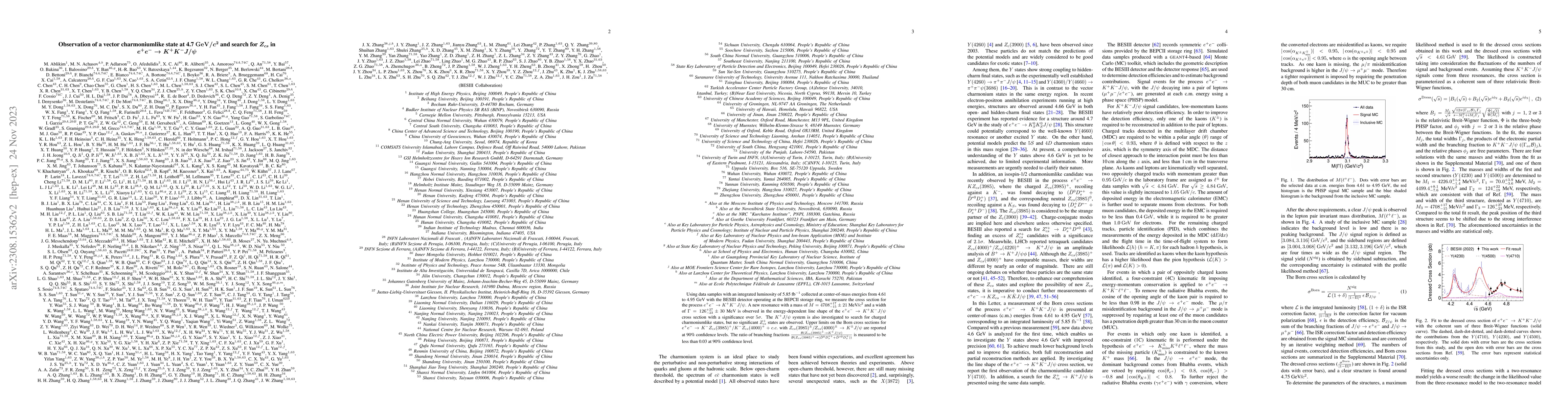 The BESIII detector observes a new vector charmoniumlike state at 4.7 GeV/$c^2$ in $e^+e^-\to K^+K^-J/\psi$ with a significance over $5\sigma$. No significant $Z_{cs}^+$ states are found in the $K^{+}J/\psi$ system.