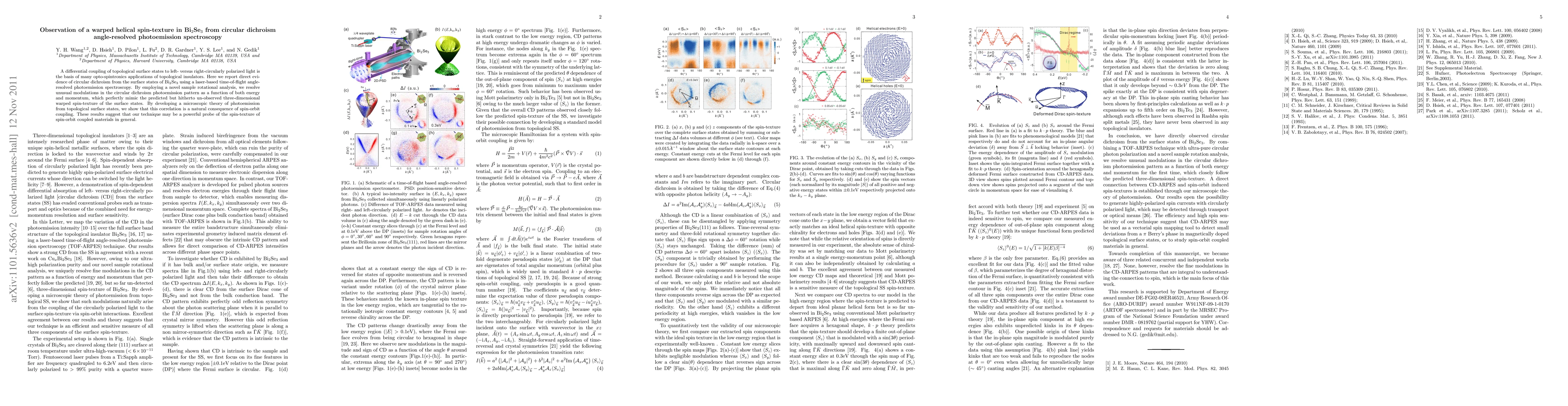 The research utilized a laser-based time-of-flight angle-resolved photoemission spectroscopy (TOF-ARPES) technique combined with circularly polarized light and a novel sample rotational analysis to study the surface states of Bi$_2$Se$_3$.