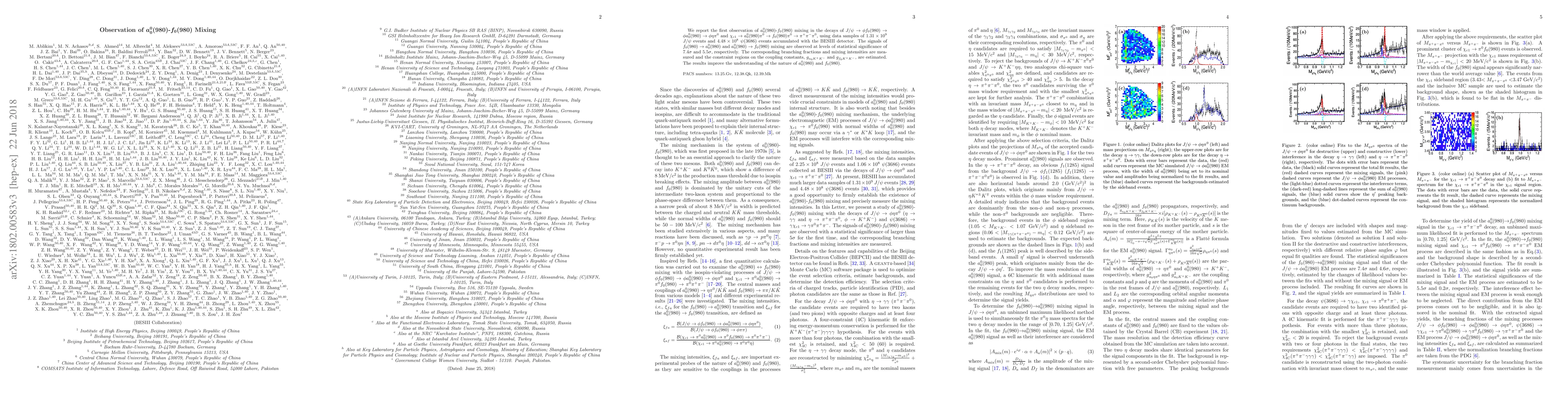 This paper reports the first observation of $a^{0}_{0}(980)$-$f_{0}(980)$ mixing in specific decay processes using BESIII detector data, revealing significant mixing signals and providing new insights into the nature of these particles.
