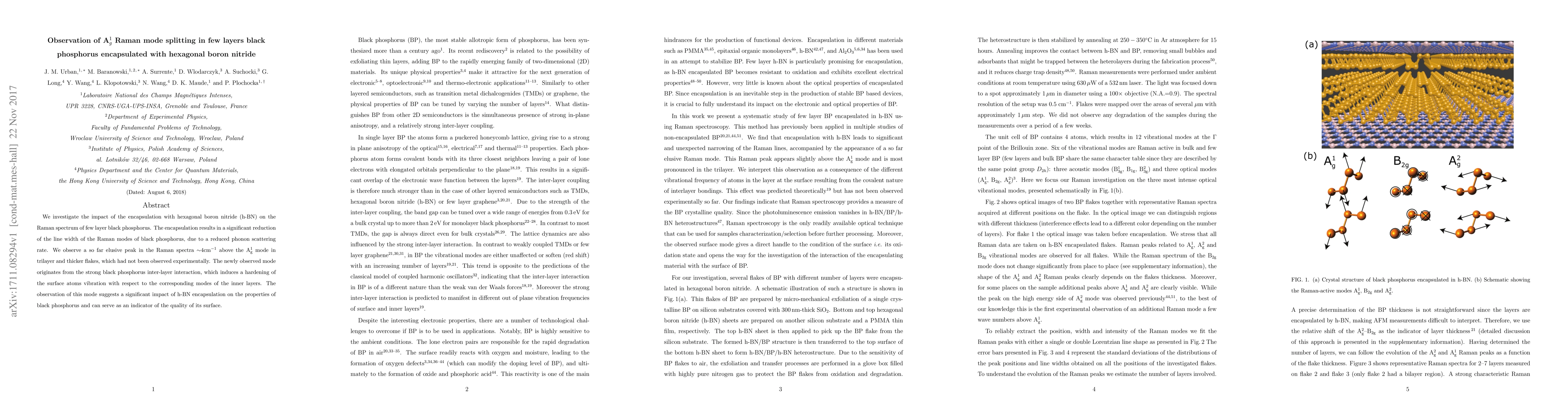 This study reveals that encapsulating few-layer black phosphorus with hexagonal boron nitride reduces phonon scattering and broadens Raman modes. Notably, it identifies a previously unseen peak in the Raman spectra, indicating enhanced inter-layer interaction and surface atom vibration hardening, suggesting improved black phosphorus quality.