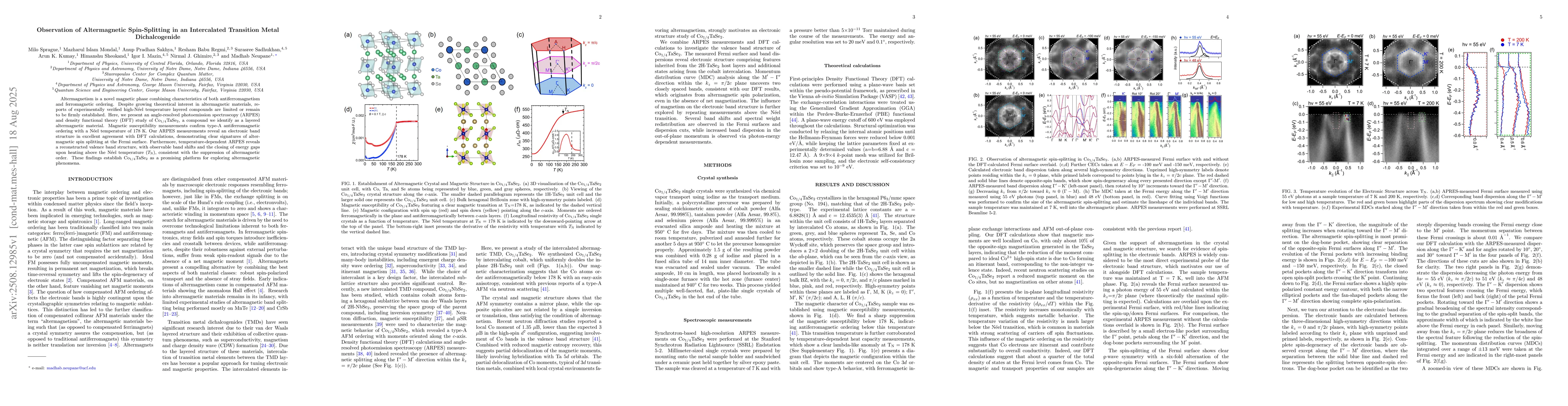 Altermagnetism is a novel magnetic phase combining characteristics of both antiferromagnetism and ferromagnetic ordering. Despite growing theoretical interest in altermagnetic materials, reports of experimentally verified high Neel temperature layered compounds are limited or remain to be firmly established. Here, we present an angle resolved photoemission spectroscopy (ARPES) and density functional theory (DFT) study of Co1/4TaSe2, a compound we identify as a layered altermagnetic material. Magnetic susceptibility measurements confirm type A antiferromagnetic ordering with a Neel temperature of 178 K. Our ARPES measurements reveal an electronic band structure in excellent agreement with DFT calculations, demonstrating clear signatures of altermagnetic spin splitting at the Fermi surface. Furthermore, temperature dependent ARPES reveals a reconstructed valence band structure, with observable band shifts and the closing of energy gaps upon heating above the Neel temperature (TN), consistent with the suppression of altermagnetic order. These findings establish Co1/4TaSe2 as a promising platform for exploring altermagnetic phenomena.