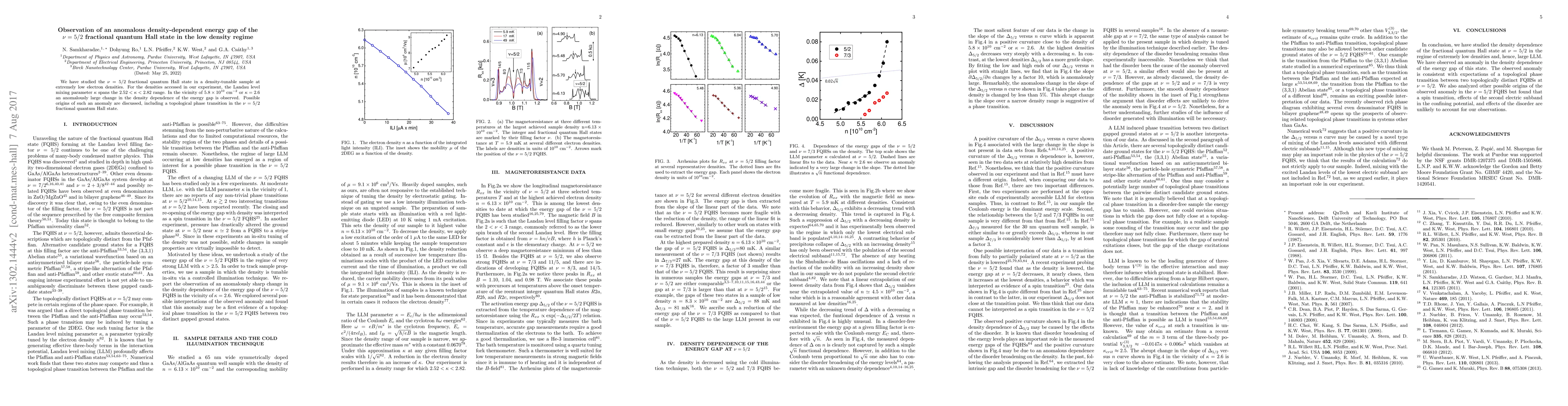 This research investigates the $\nu=5/2$ fractional quantum Hall state at low electron densities, revealing an anomalously large change in the energy gap's density dependence near $\kappa = 2.6$. Possible explanations for this anomaly include a topological phase transition in the state.