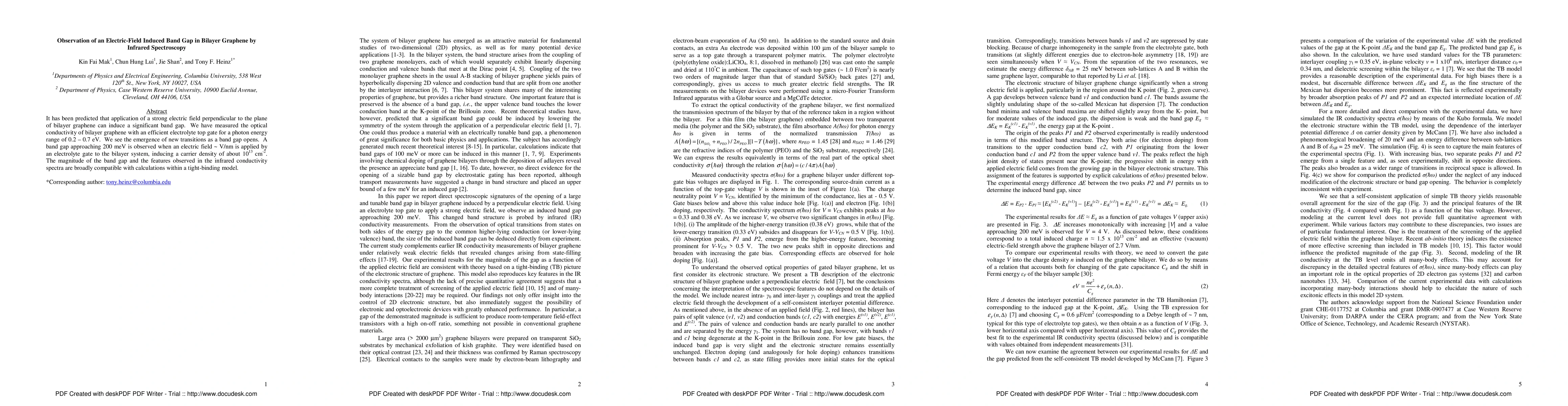 The research demonstrates that applying a strong electric field to bilayer graphene induces a significant band gap, observed through infrared spectroscopy and confirmed by optical conductivity measurements. The induced band gap, approaching 200 meV, aligns with theoretical predictions based on a tight-binding model.