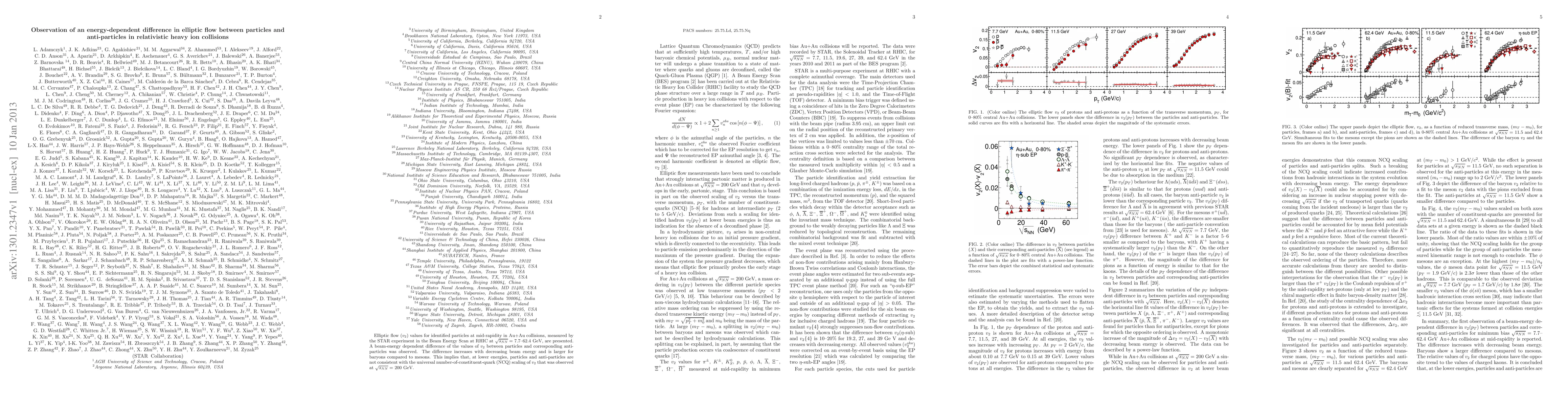 The STAR experiment at RHIC observed a beam-energy dependent difference in elliptic flow ($v_{2}$) between particles and anti-particles in Au+Au collisions from 7.7--62.4 GeV. This disparity, more pronounced for baryons than mesons and increasing at lower energies, challenges the earlier NCQ scaling observed at 200 GeV.