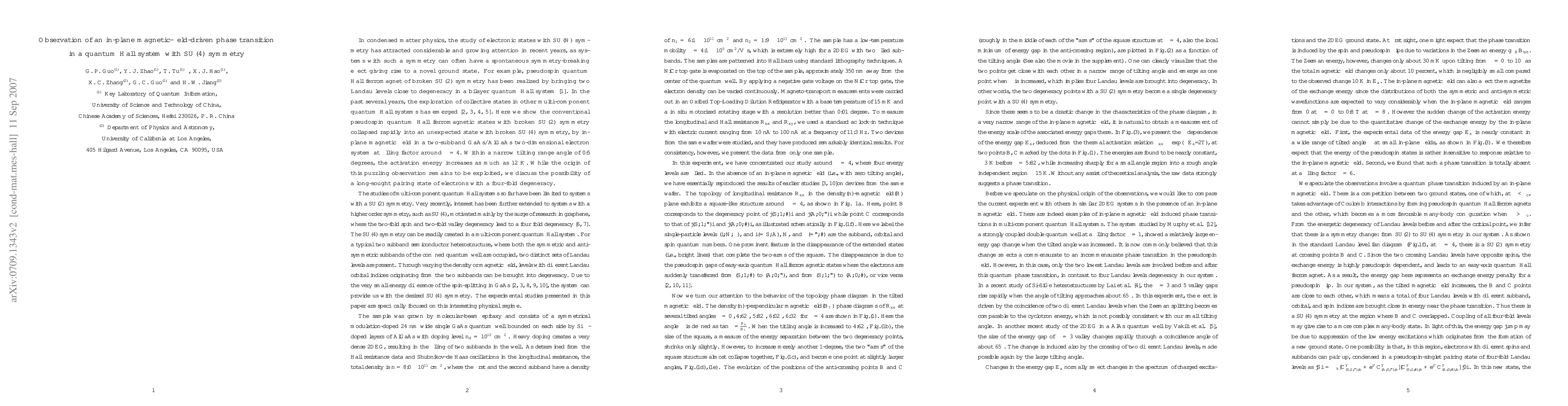In condensed matter physics, the study of electronic states with SU(N) symmetry has attracted considerable and growing attention in recent years, as systems with such a symmetry can often have a spontaneous symmetry-breaking effect giving rise to a novel ground state. For example, pseudospin quantum Hall ferromagnet of broken SU(2) symmetry has been realized by bringing two Landau levels close to degeneracy in a bilayer quantum Hall system. In the past several years, the exploration of collective states in other multi-component quantum Hall systems has emerged. Here we show the conventional pseudospin quantum Hall ferromagnetic states with broken SU(2) symmetry collapsed rapidly into an unexpected state with broken SU(4) symmetry, by in-plane magnetic field in a two-subband GaAs/AlGaAs two-dimensional electron system at filling factor around $\nu=4$. Within a narrow tilting range angle of 0.5 degrees, the activation energy increases as much as 12 K. While the origin of this puzzling observation remains to be exploited, we discuss the possibility of a long-sought pairing state of electrons with a four-fold degeneracy.