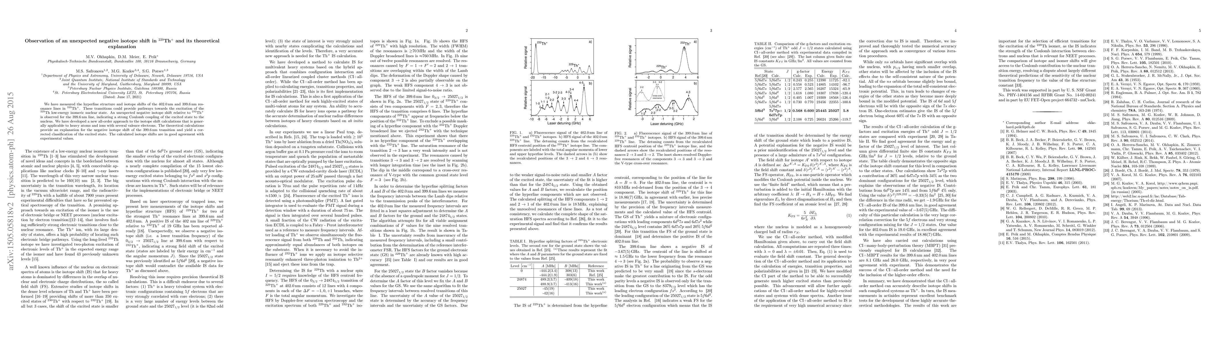 Researchers measured the hyperfine structure of 229Th+ transitions and found a negative isotope shift, indicating strong nuclear-coupling effects, which were later explained using new theoretical calculations.
