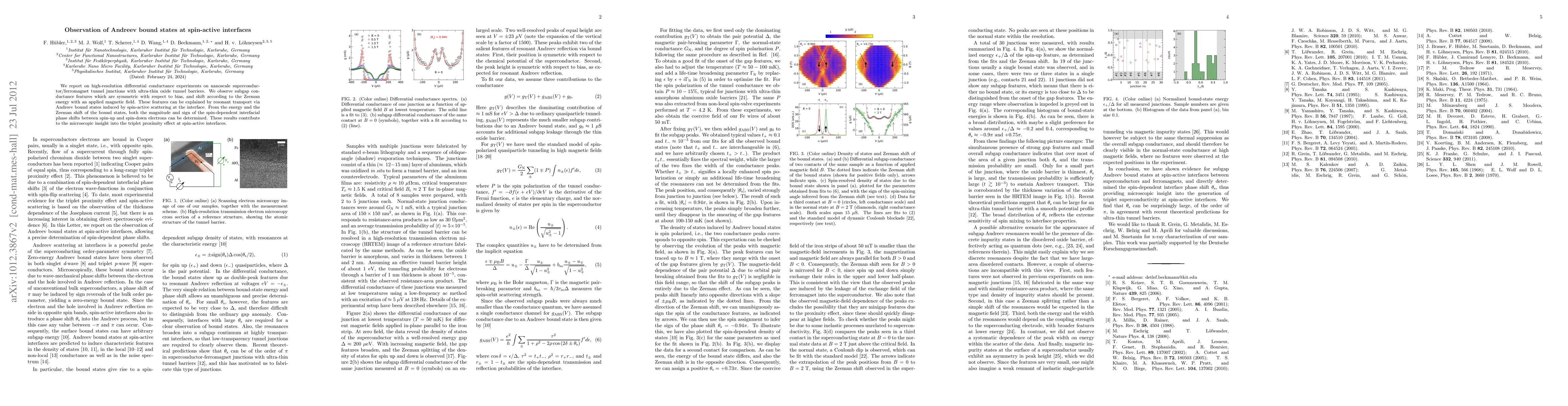 We report on high-resolution differential conductance experiments on nanoscale superconductor/ferromagnet tunnel junctions with ultra-thin oxide tunnel barriers. We observe subgap conductance features which are symmetric with respect to bias, and shift according to the Zeeman energy with an applied magnetic field. These features can be explained by resonant transport via Andreev bound states induced by spin-active scattering at the interface. From the energy and the Zeeman shift of the bound states, both the magnitude and sign of the spin-dependent interfacial phase shifts between spin-up and spin-down electrons can be determined. These results contribute to the microscopic insight into the triplet proximity effect at spin-active interfaces.