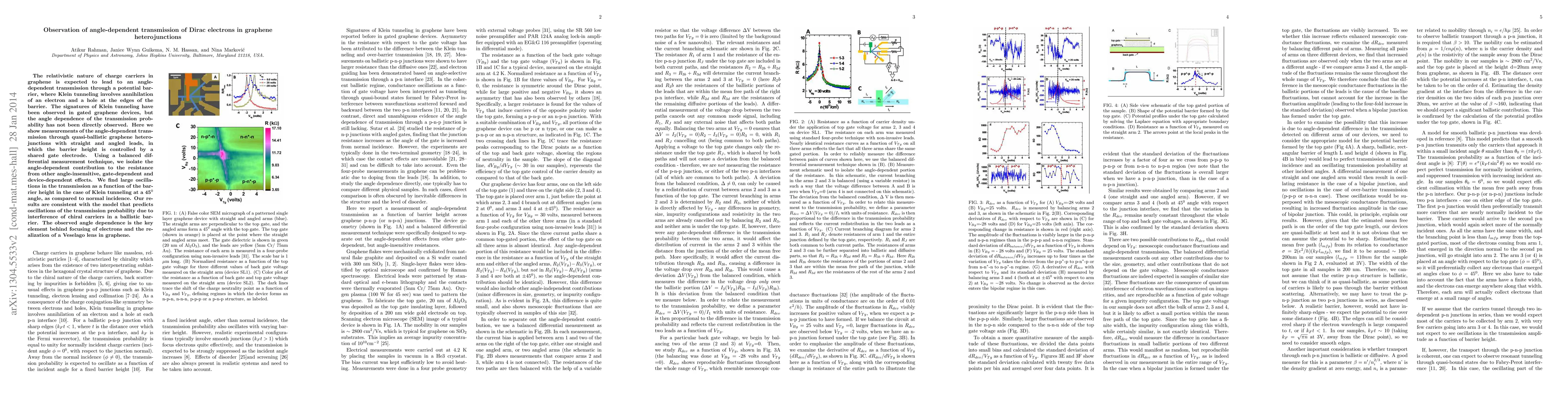 Researchers observed angle-dependent transmission of Dirac electrons in graphene hetero junctions, revealing oscillations in transmission probability at specific angles.