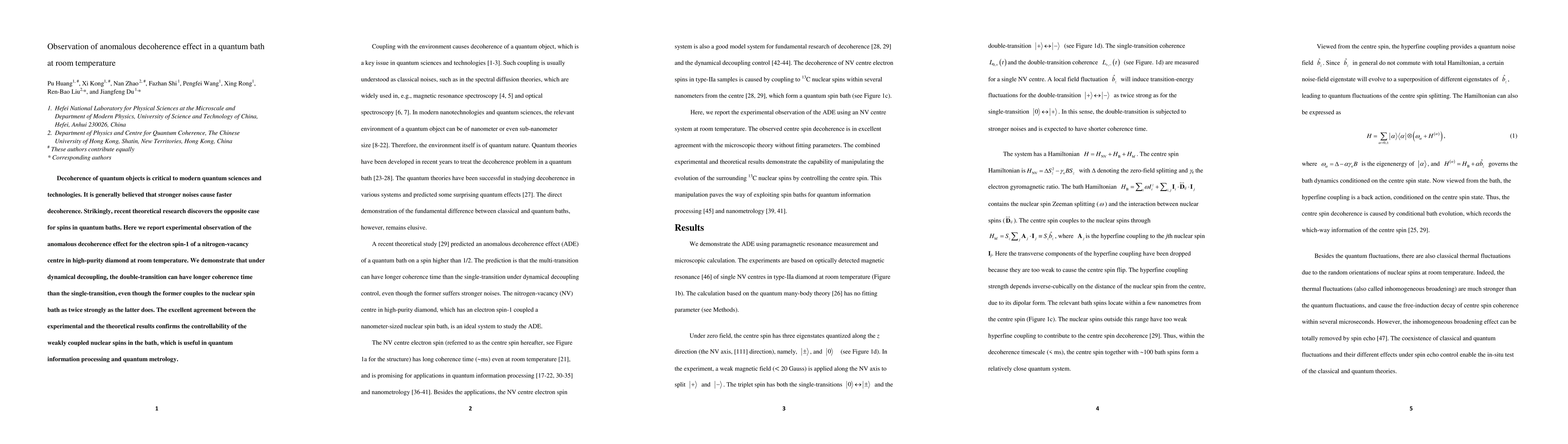 Decoherence of quantum objects is critical to modern quantum sciences and technologies. It is generally believed that stronger noises cause faster decoherence. Strikingly, recent theoretical research discovers the opposite case for spins in quantum baths. Here we report experimental observation of the anomalous decoherence effect for the electron spin-1 of a nitrogen-vacancy centre in high-purity diamond at room temperature. We demonstrate that under dynamical decoupling, the double-transition can have longer coherence time than the single-transition, even though the former couples to the nuclear spin bath as twice strongly as the latter does. The excellent agreement between the experimental and the theoretical results confirms the controllability of the weakly coupled nuclear spins in the bath, which is useful in quantum information processing and quantum metrology.