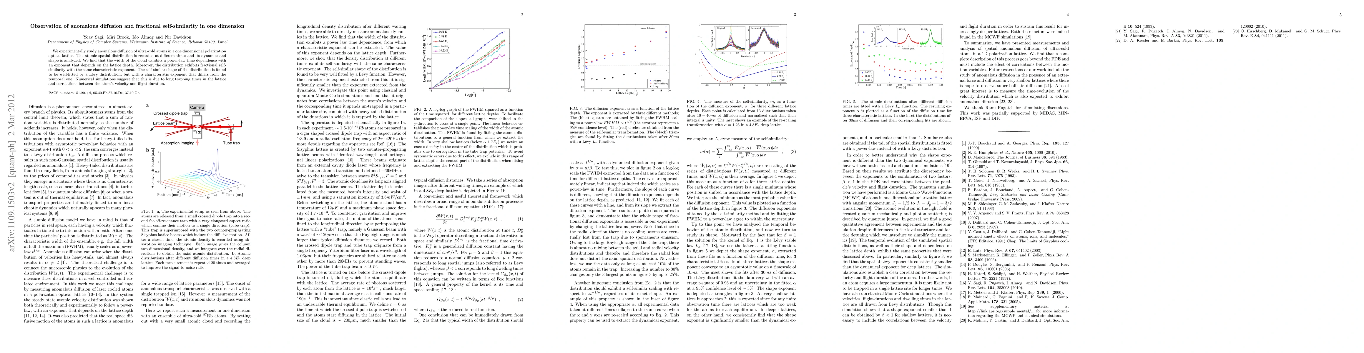 Research finds ultra-cold atoms exhibit anomalous diffusion in a one-dimensional lattice, with cloud width changing power-lawly over time and exhibiting fractional self-similarity. The distribution's shape is also found to be well-described by a Lévy distribution with a distinct characteristic exponent.