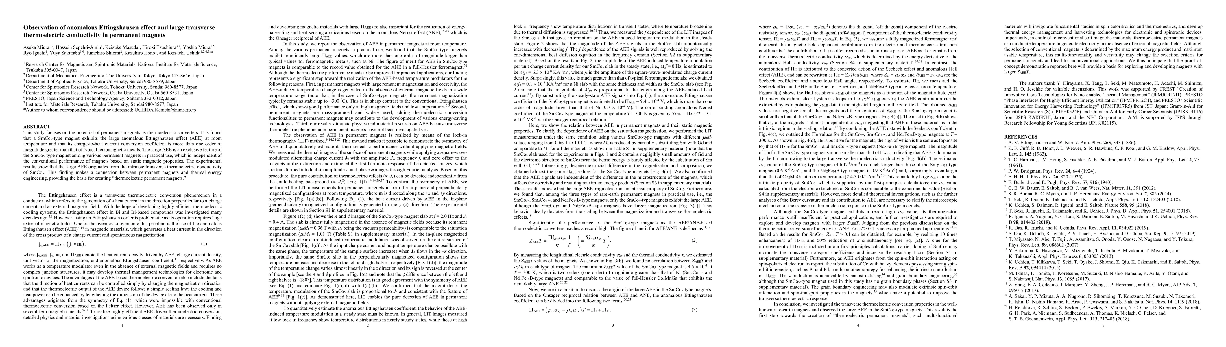 This study reveals that SmCo$_5$-type permanent magnets exhibit a large anomalous Ettingshausen effect (AEE) at room temperature, significantly greater than typical ferromagnetic metals, due to intrinsic transverse thermoelectric conductivity. This discovery bridges permanent magnets with thermal energy engineering, paving the way for "thermoelectric permanent magnets."